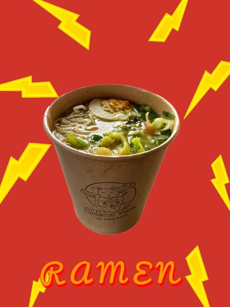 Chop suey frito con pollo, jamón, lechón, salteado con repollo, zanahoria y cebollín.