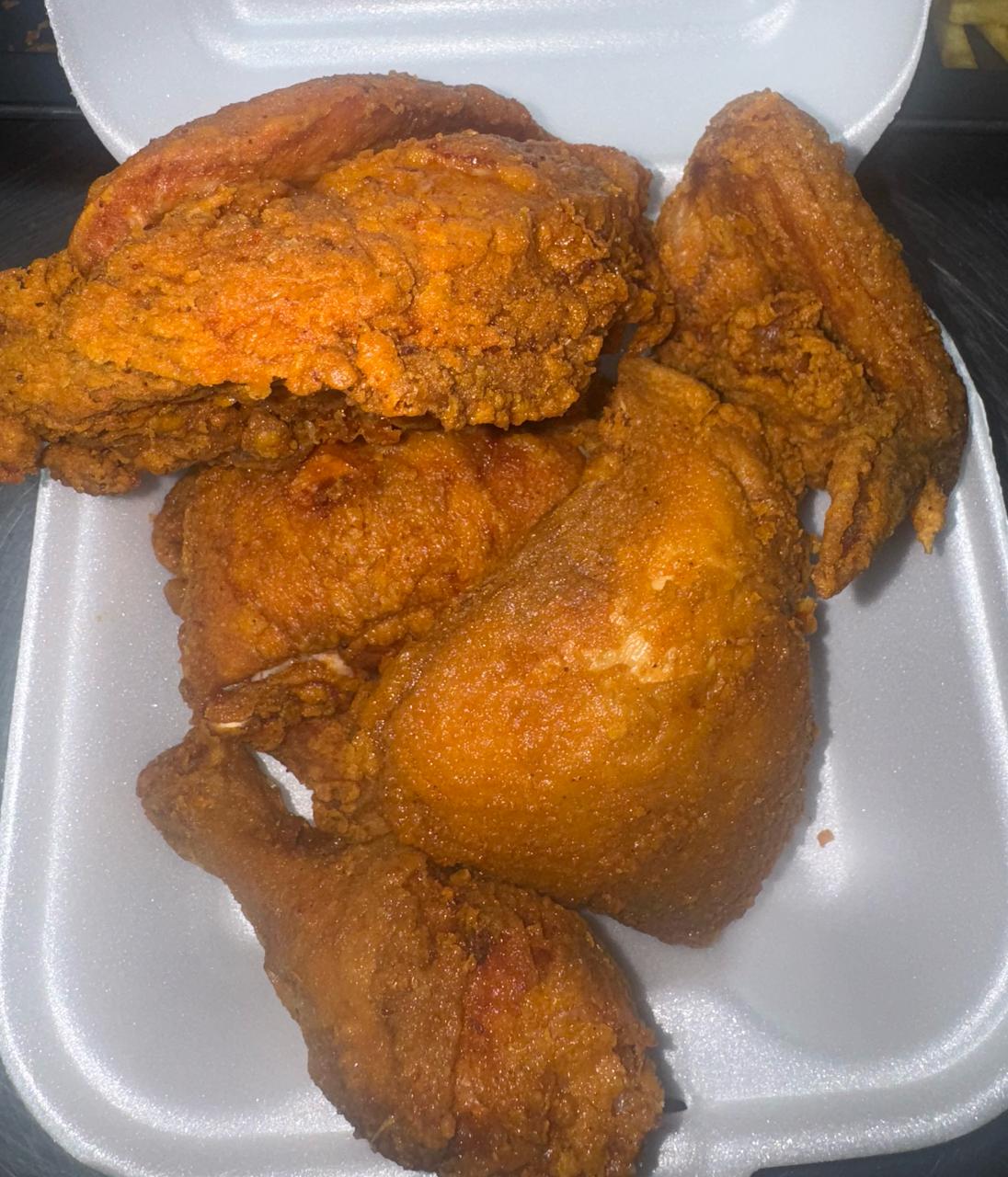 Porción de pechuga y ala con papas y gaseosa 355 ml.