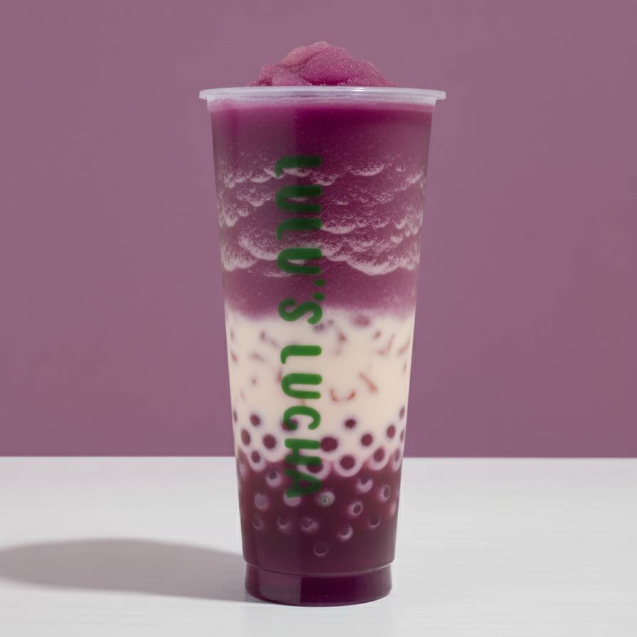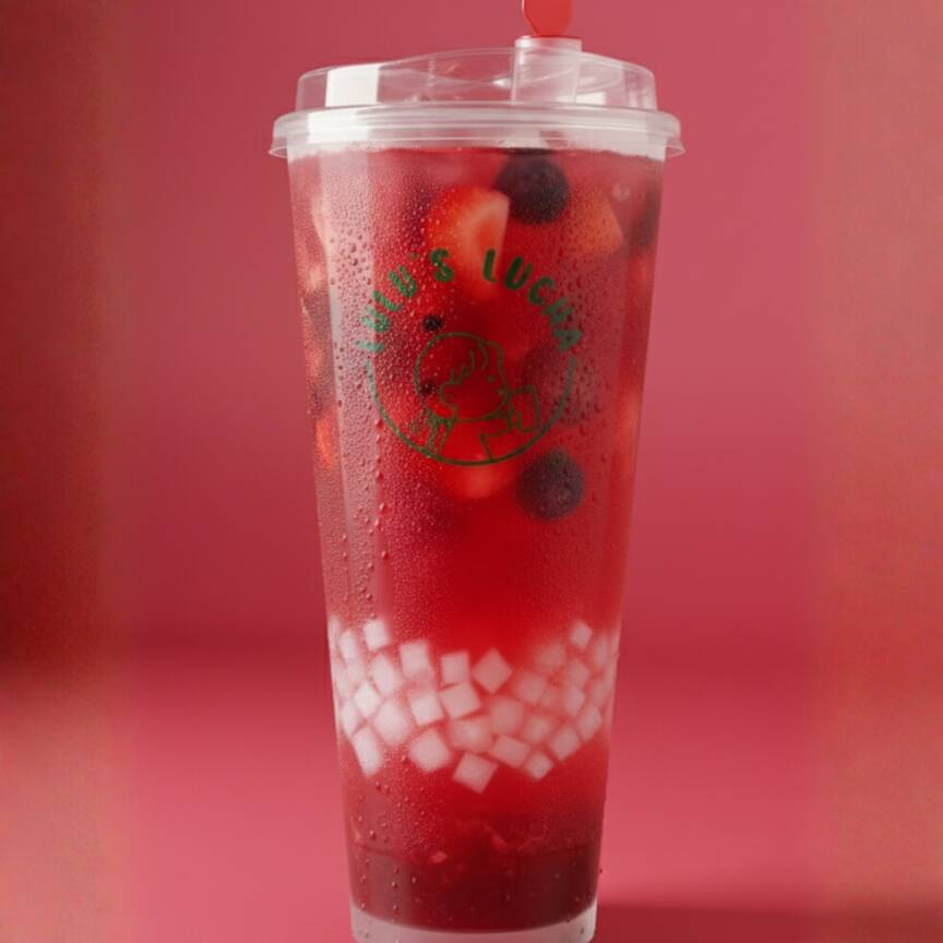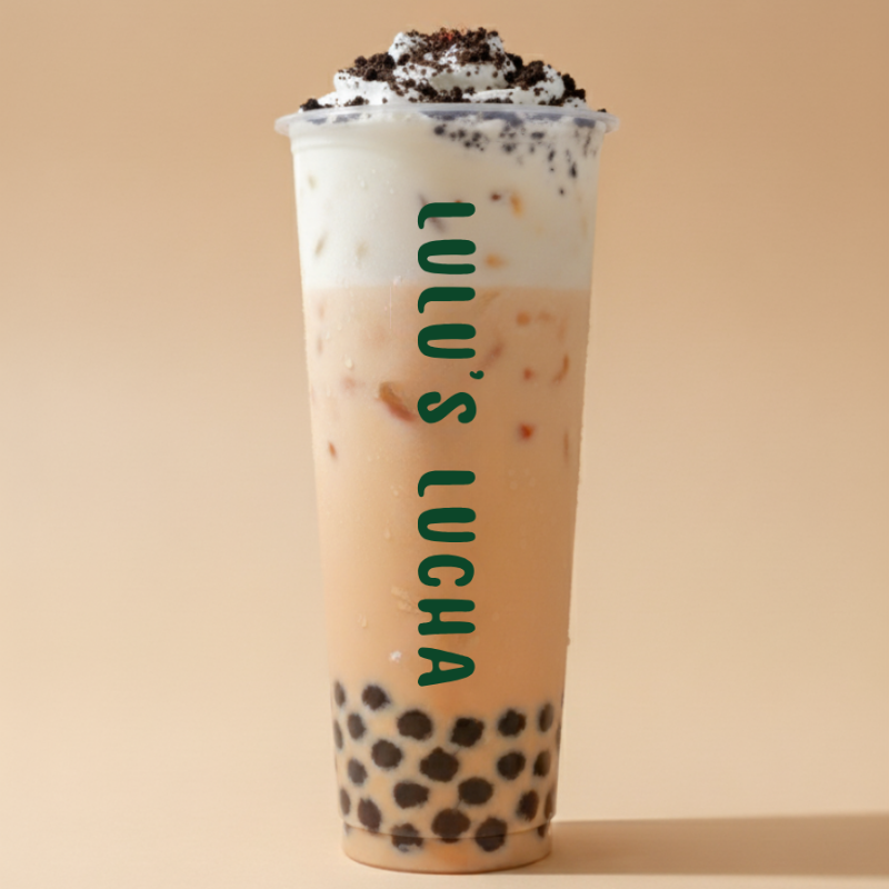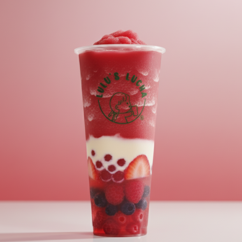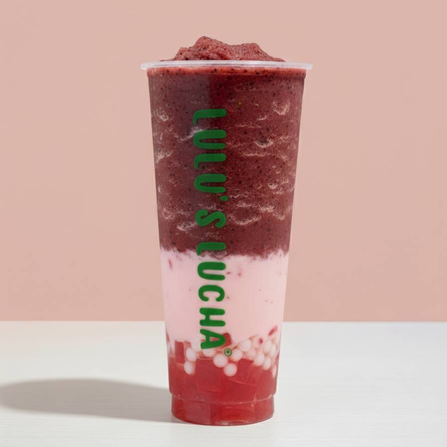 Contiene fruta, azúcar, hielo, agua, jalea, boba explosión y una capa de foamy sabor cheesecake. 700ml