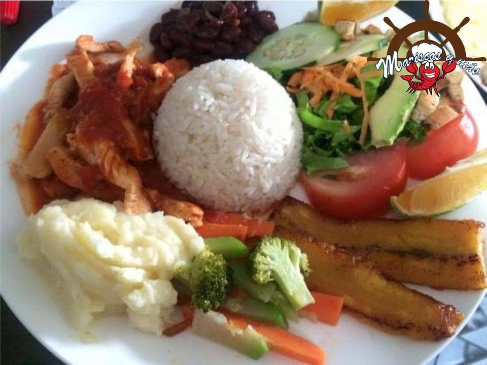Casado ( 1 pieza) + Con bistec 100gr, chuleta 100gr, pollo 100gr o pescado 100gr. ( una de estas opciones)
