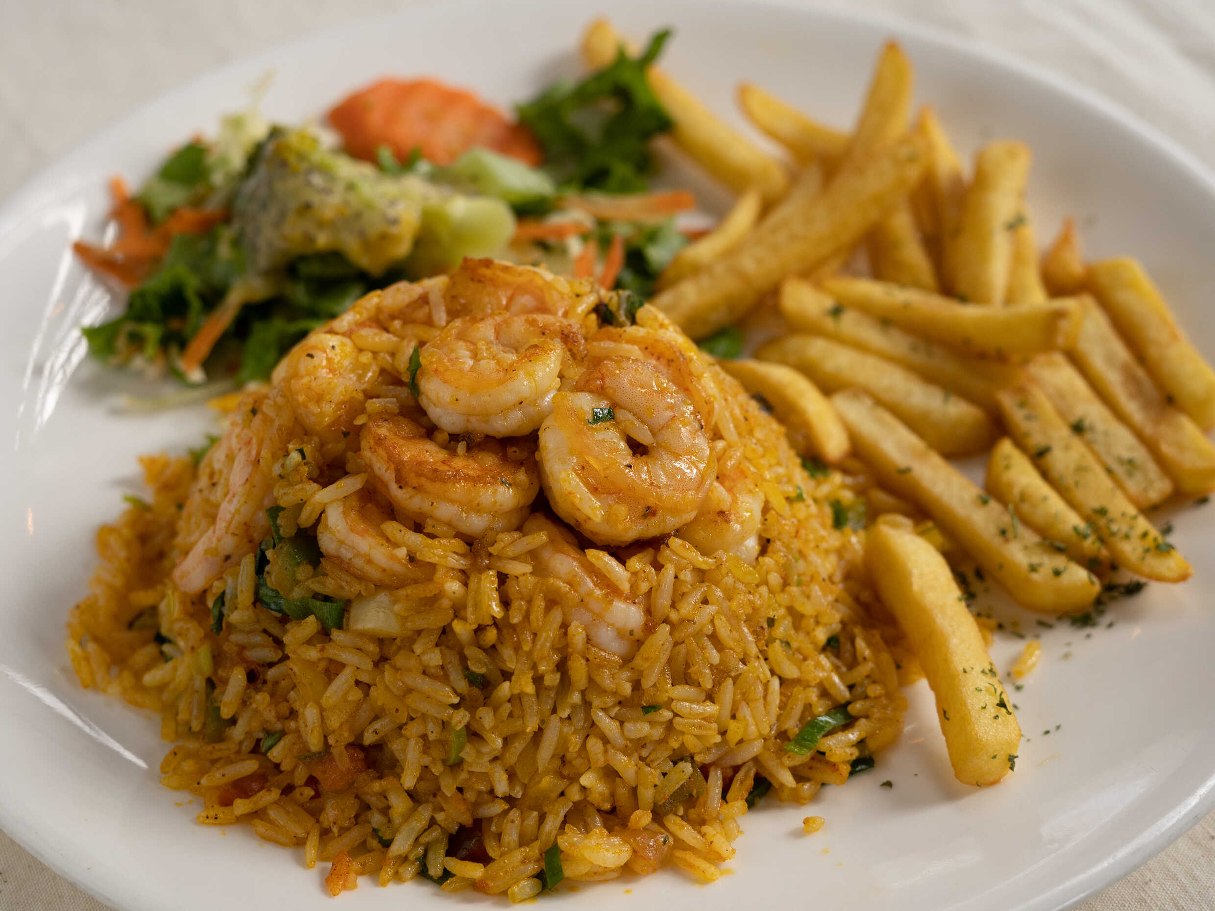 Acompañado de tortillitas tostadas, arroz y ensalada