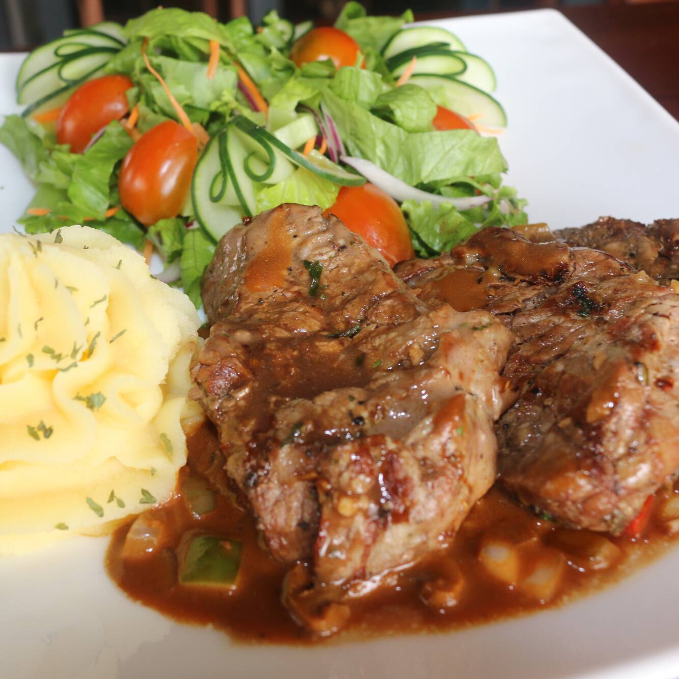 Medallones de Lomito en Salsa de Vino y Hongos
