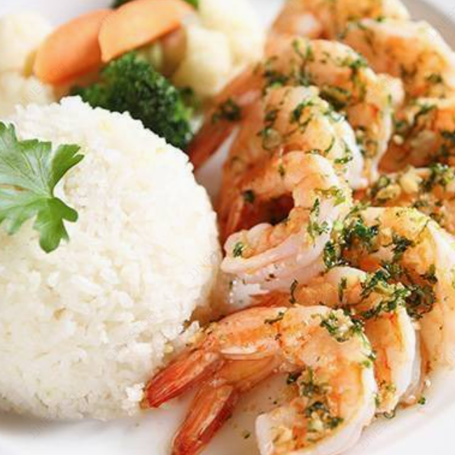 Deliciosos camarones elaborados a su elección ( empanizado, al ajillo, mantequilla, salsa blanca, salsa de tomate o a la diabla), puré y vegetales.