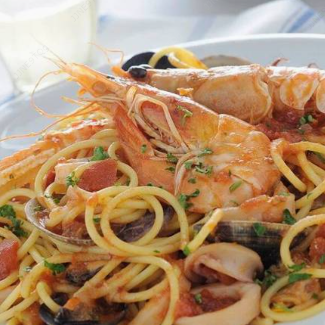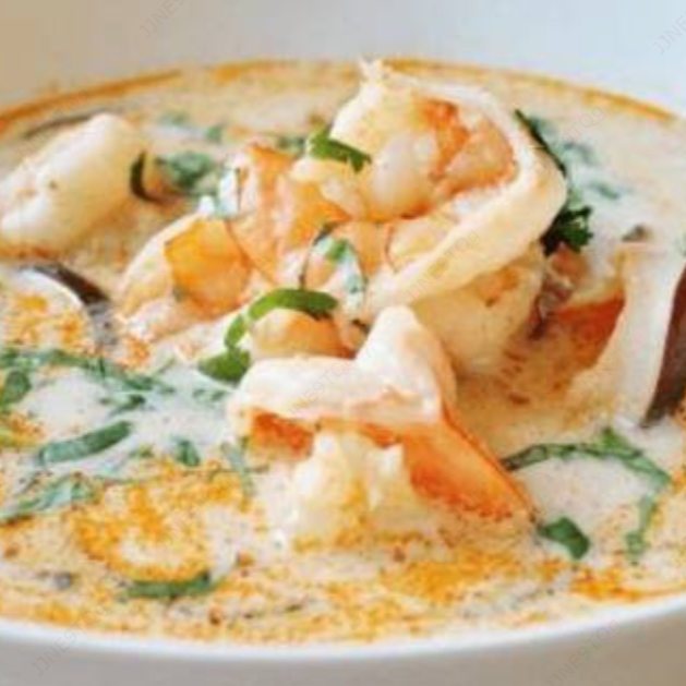 Una deliciosa crema de mariscos frescos y seleccionados, queso parmesano, mozzarella elaborada con vino blanco. Mariscos frescos y seleccionados (pulpo, calamar, camarón vino blanco sabor artificial no contiene alcohol).