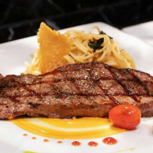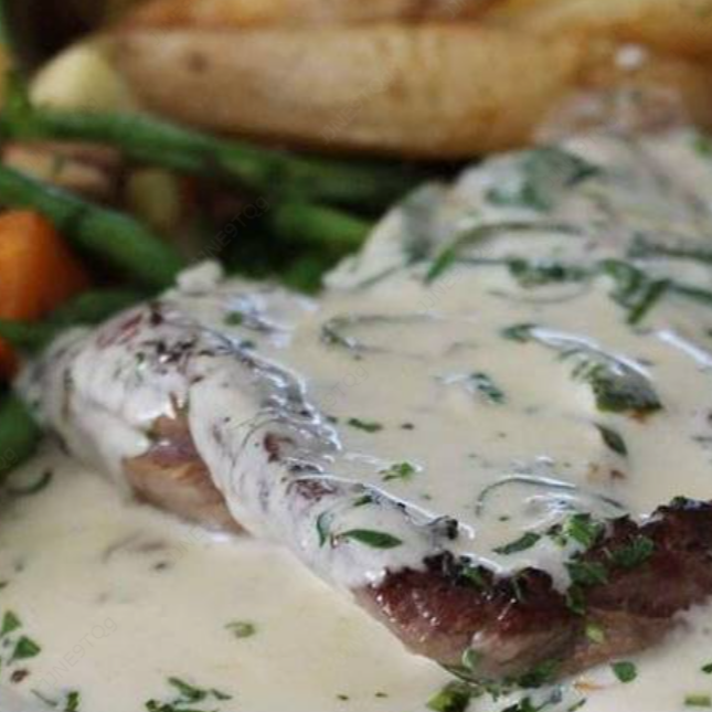250 g De jugoso lomito de res a la plancha, bañado en salsa blanca con jalapeños, papa asada y vegetales.