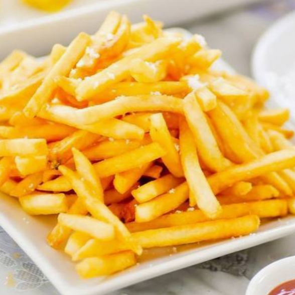 Papas a la francesa de corte fino, doradas y crujientes.