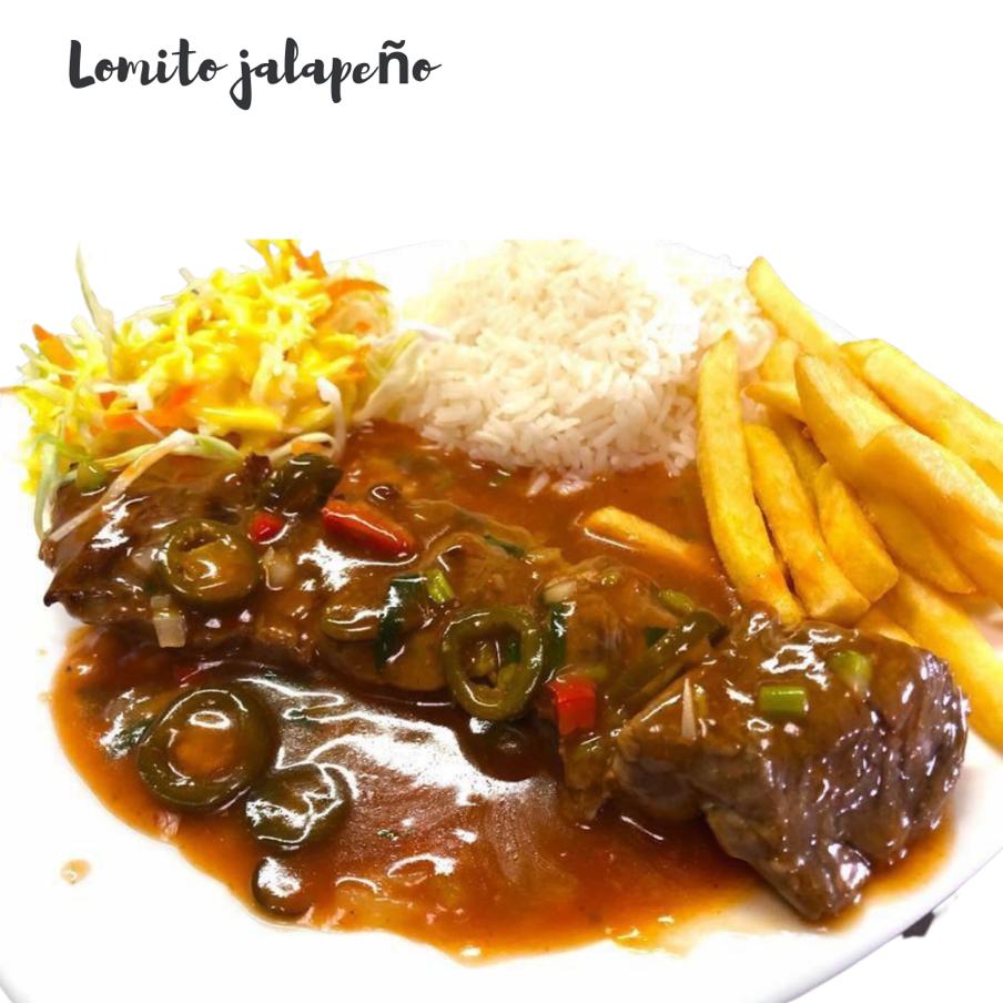 Lomito a la plancha bañado de salsa tomate con chile jalapeño.
