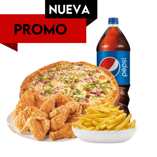Pizza Familia 8 Slices + 8 Piezas de Pollo + Papa Mediana + Gaseosa 2.5 L