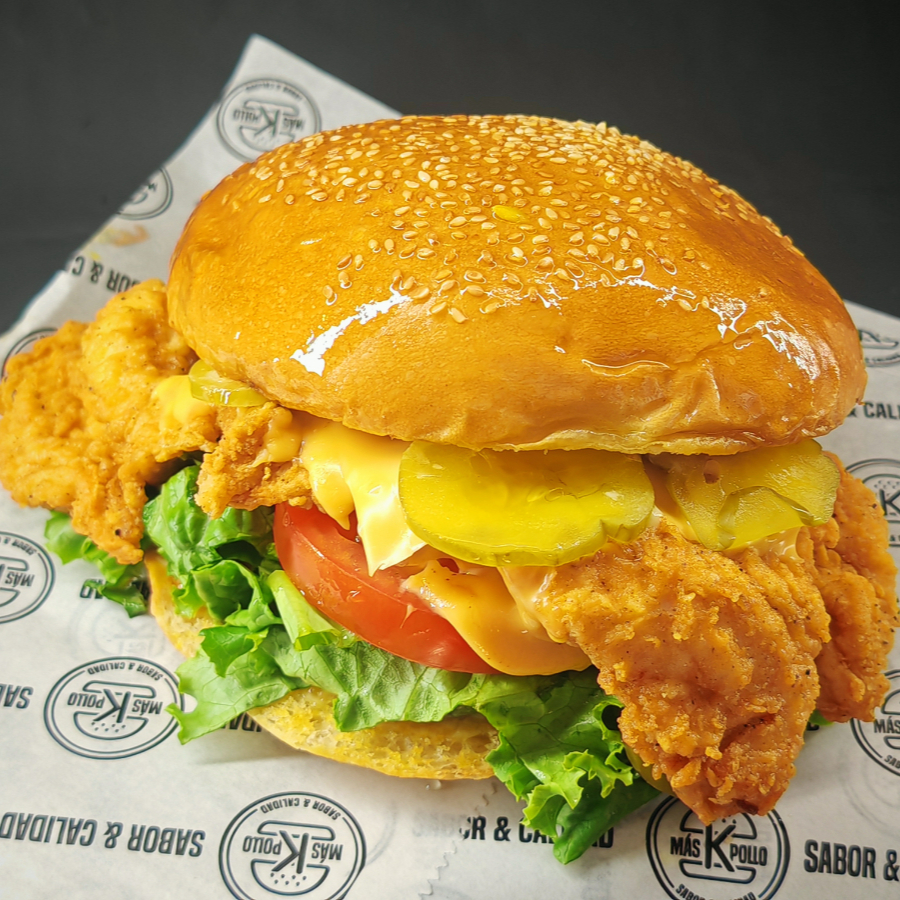Filete de pechuga pollo milanesa, lechuga y tomates frescos, pepinillo, queso amarillo, salsa de la casa, dele un giro de sabor bañando tu pechuga en la salsa que prefieras, bbq, búfalo o mostaza miel.