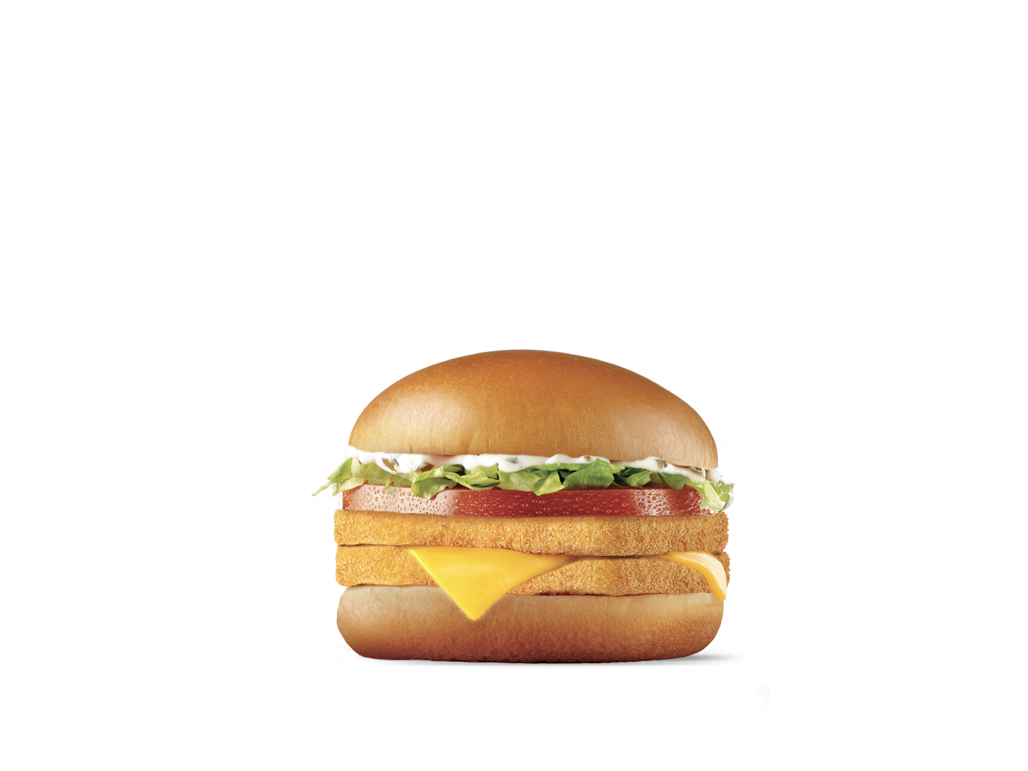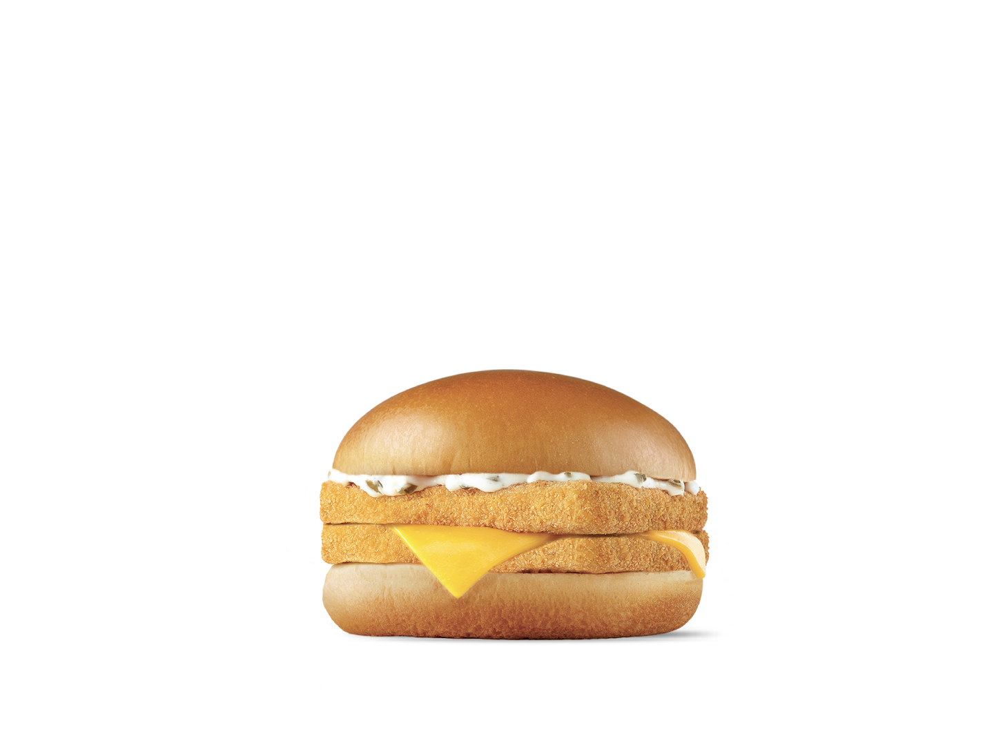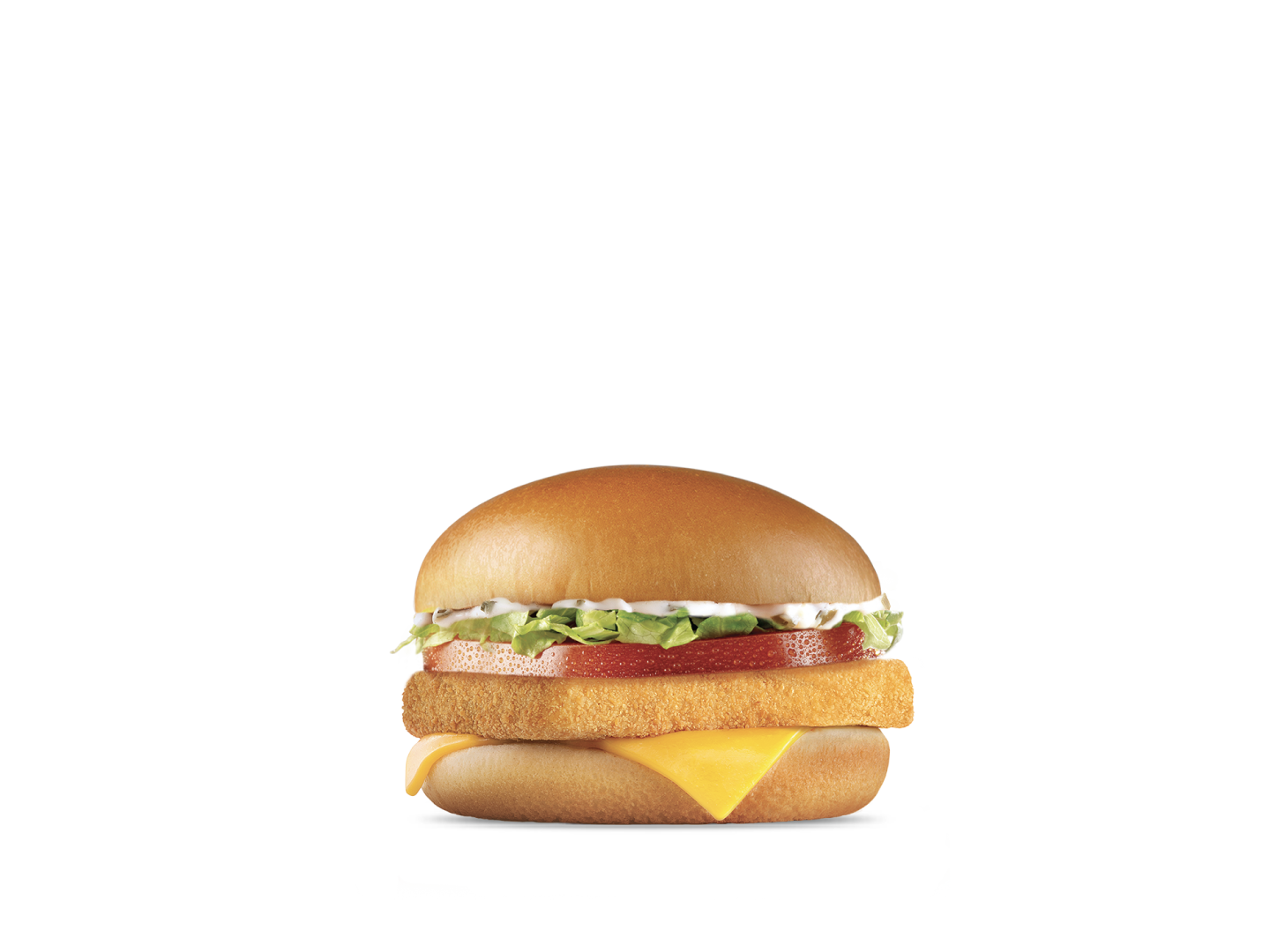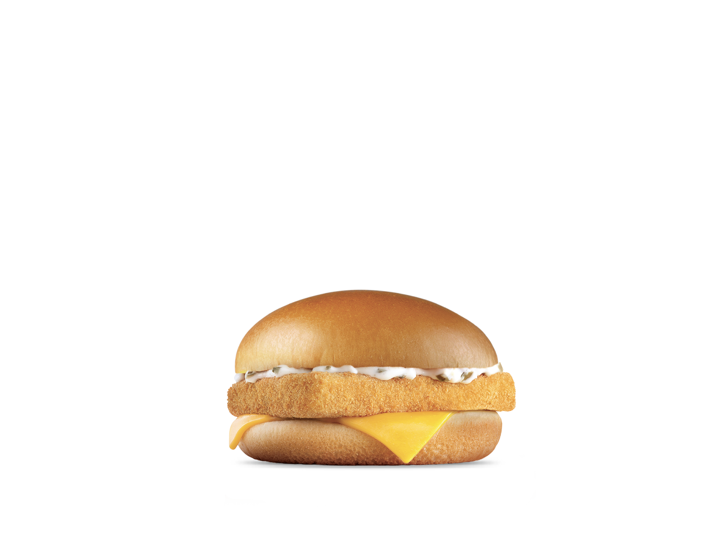 Hamburguesa de pescado con salsa tártara y queso amarillo. Con Acompañamiento Mediano y Bebida Mediana a elegir.