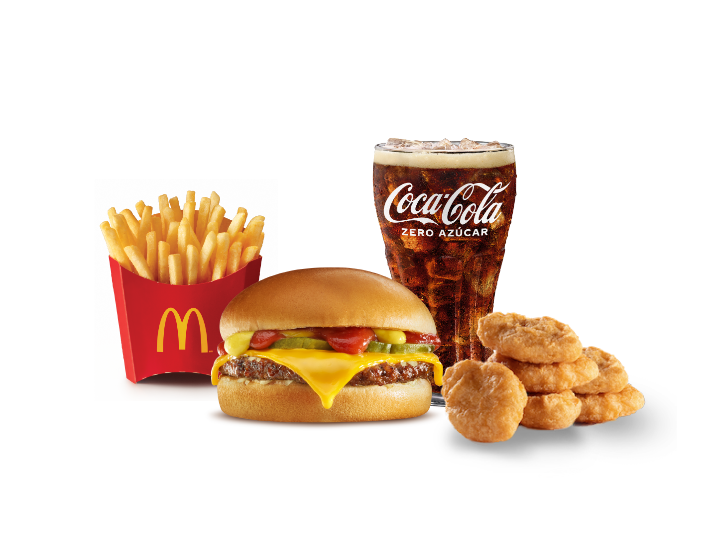 Hamburguesa con Queso, 4 Chicken McNuggets®, McPapas® Grandes y