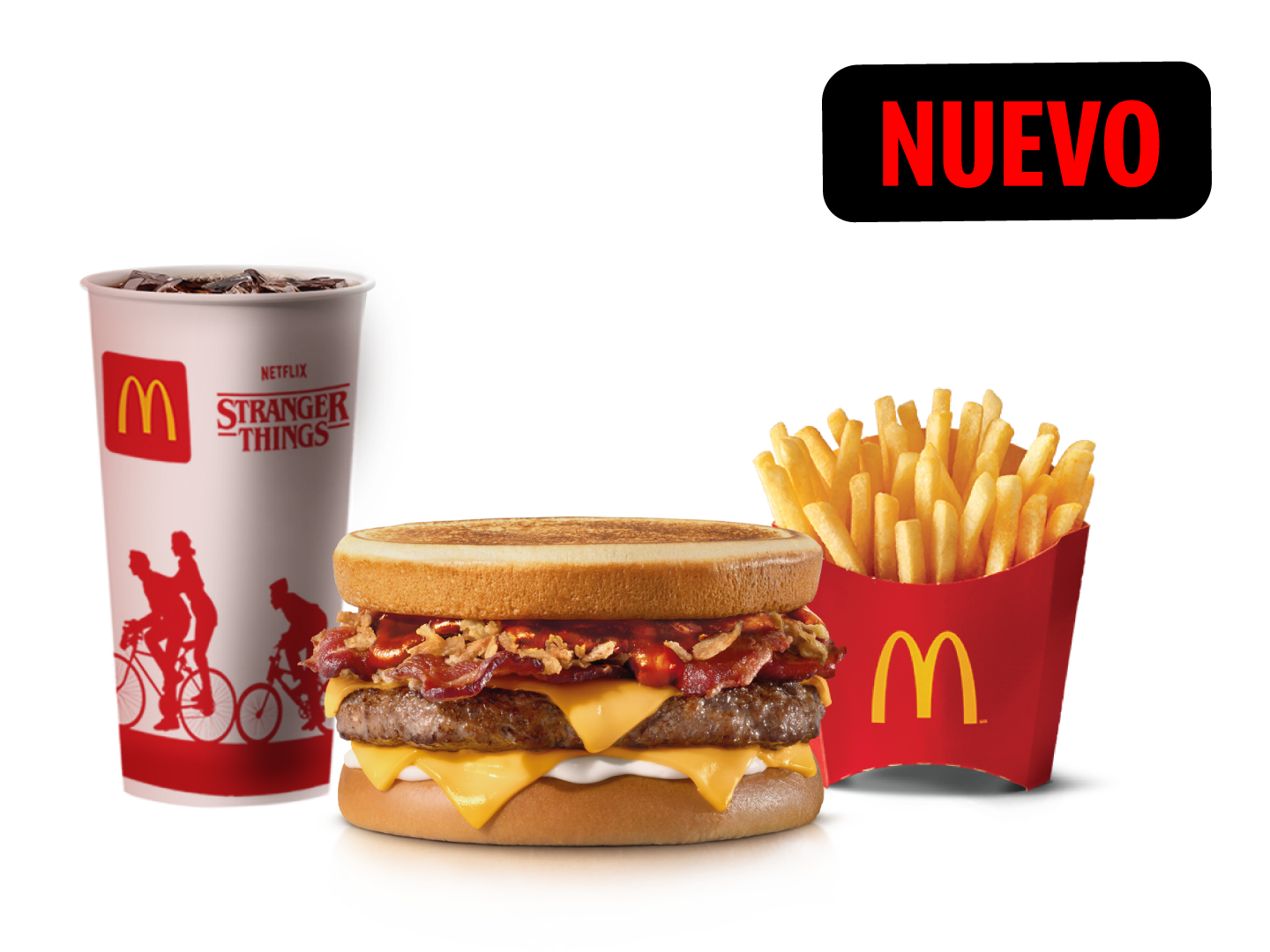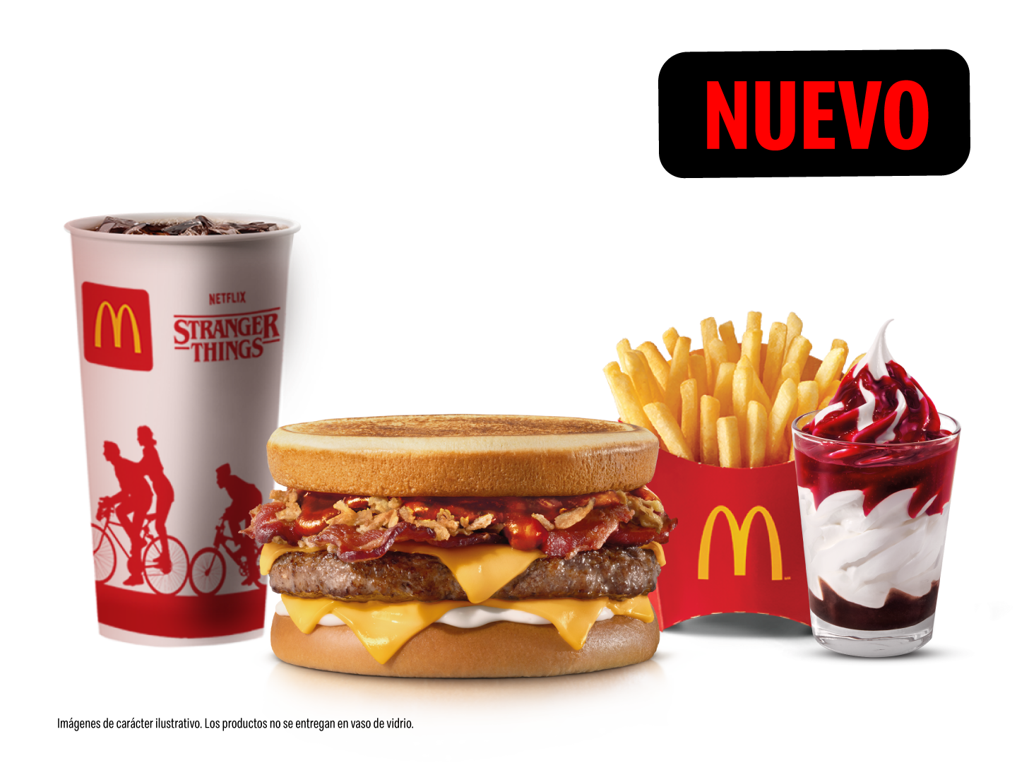 Stranger Burger Sandwich, con acompañamiento mediano, Scoops Sundae y bebida mediana a elegir.