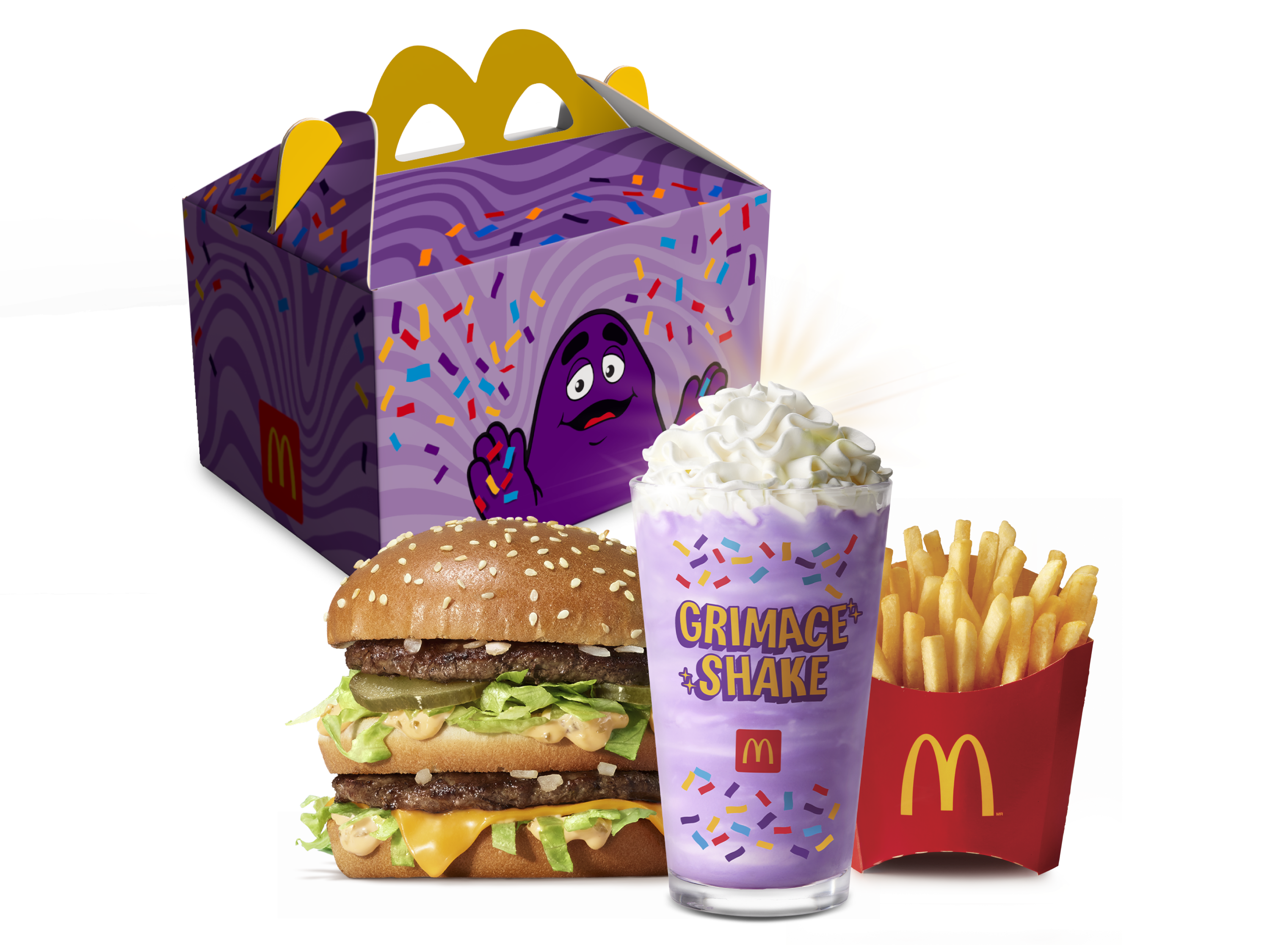 Cajita Feliz con McFiesta Junior, papas, yogurt de fresa y néctar de manzana.