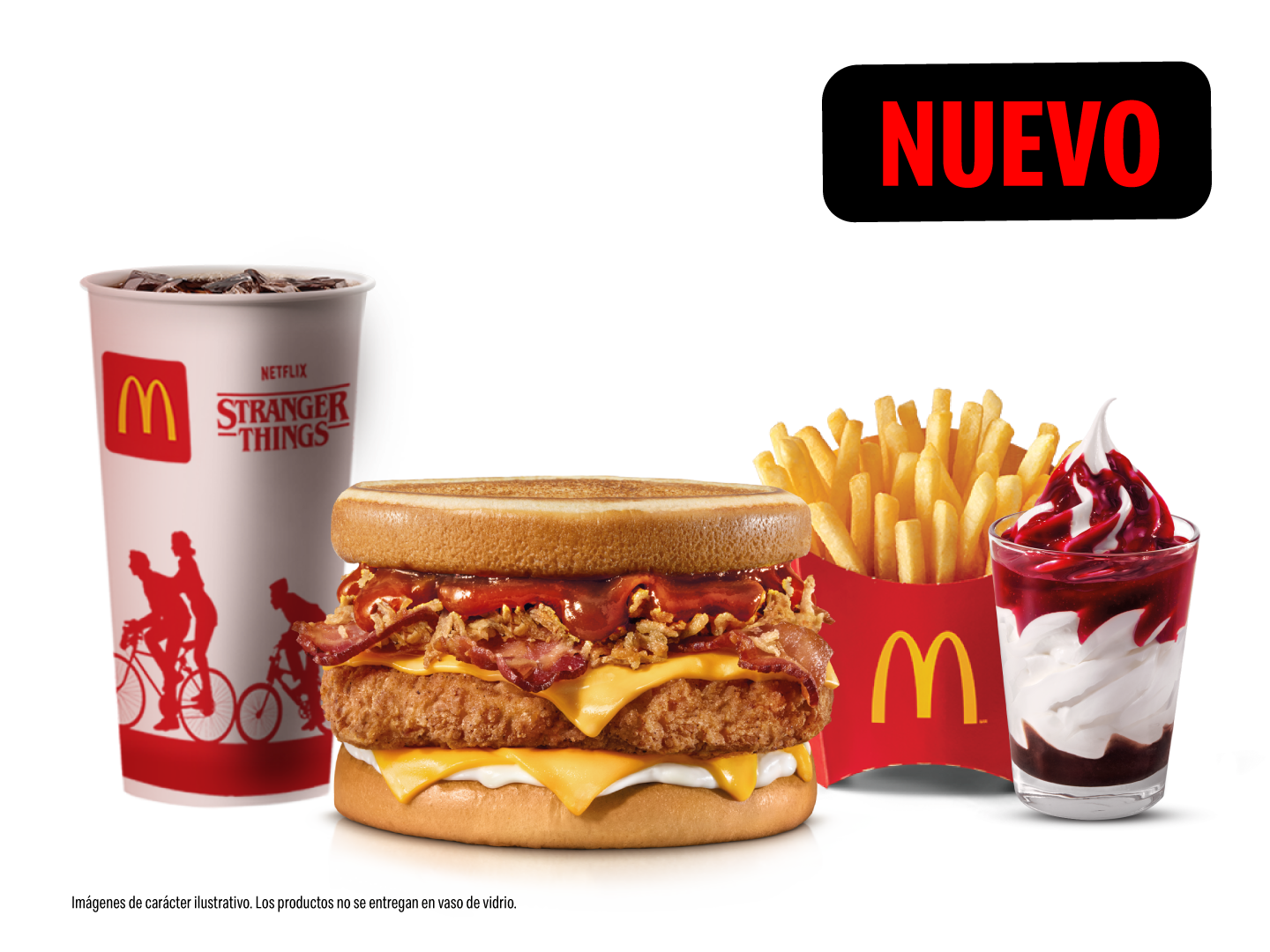 Stranger Chicken Sandwich, con acompañamiento mediano, Scoops Sundae y bebida mediana a elegir.