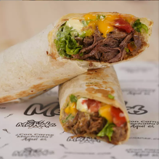 Deliciosa y jugosa carne mechada con quesos, frijoles, salsa cheddar, lechuga, pico de gallo, mayonesa de la casa y kétchup, envuelto en tortilla de harina.