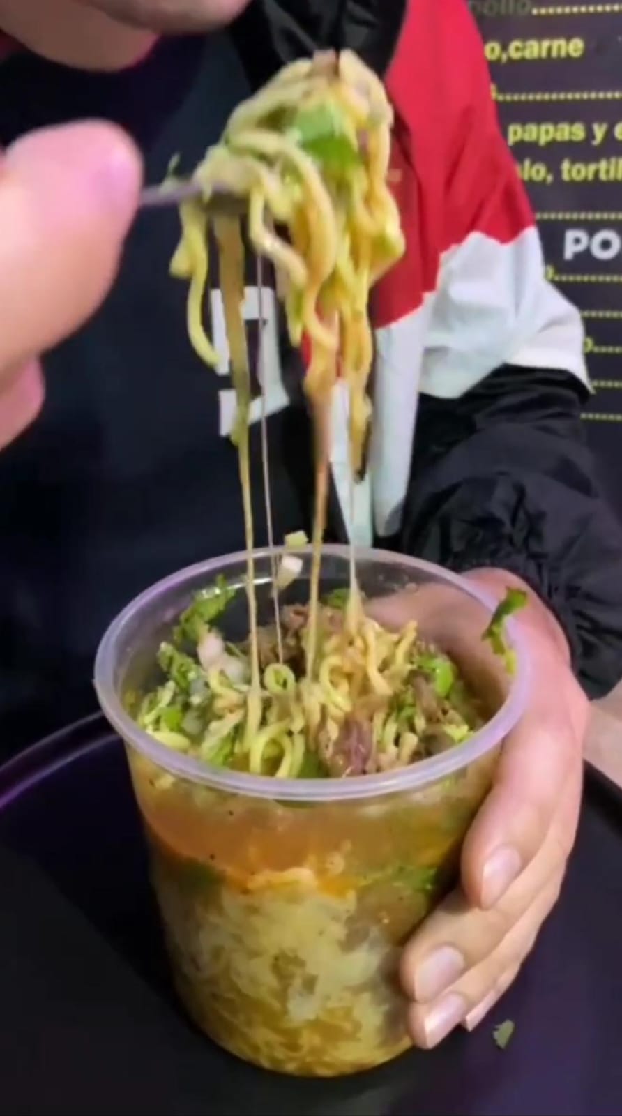 Base Maruchan en consomé de birria , carne de birria , queso mozzarella , culantro cebolla y limón