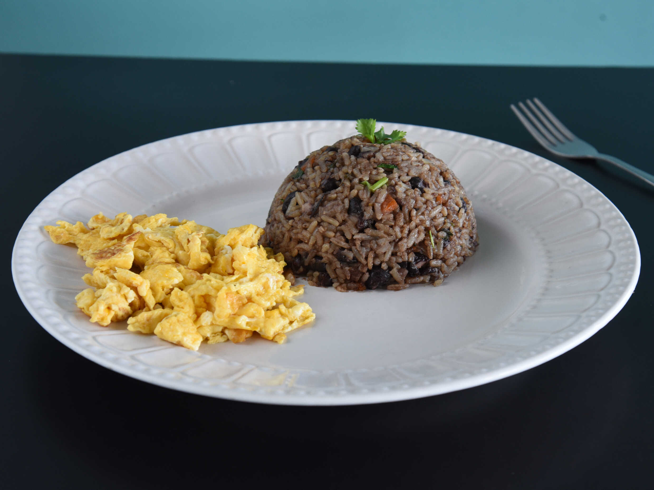 Porcion de Pinto acompañada de la deliciosa carne en salsa de la casa