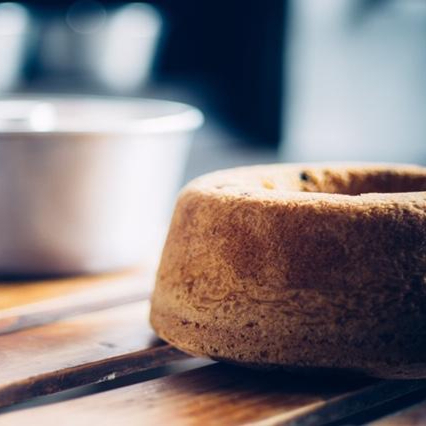 Un café con leche mas una tajadita del delicioso queque seco de Merayo