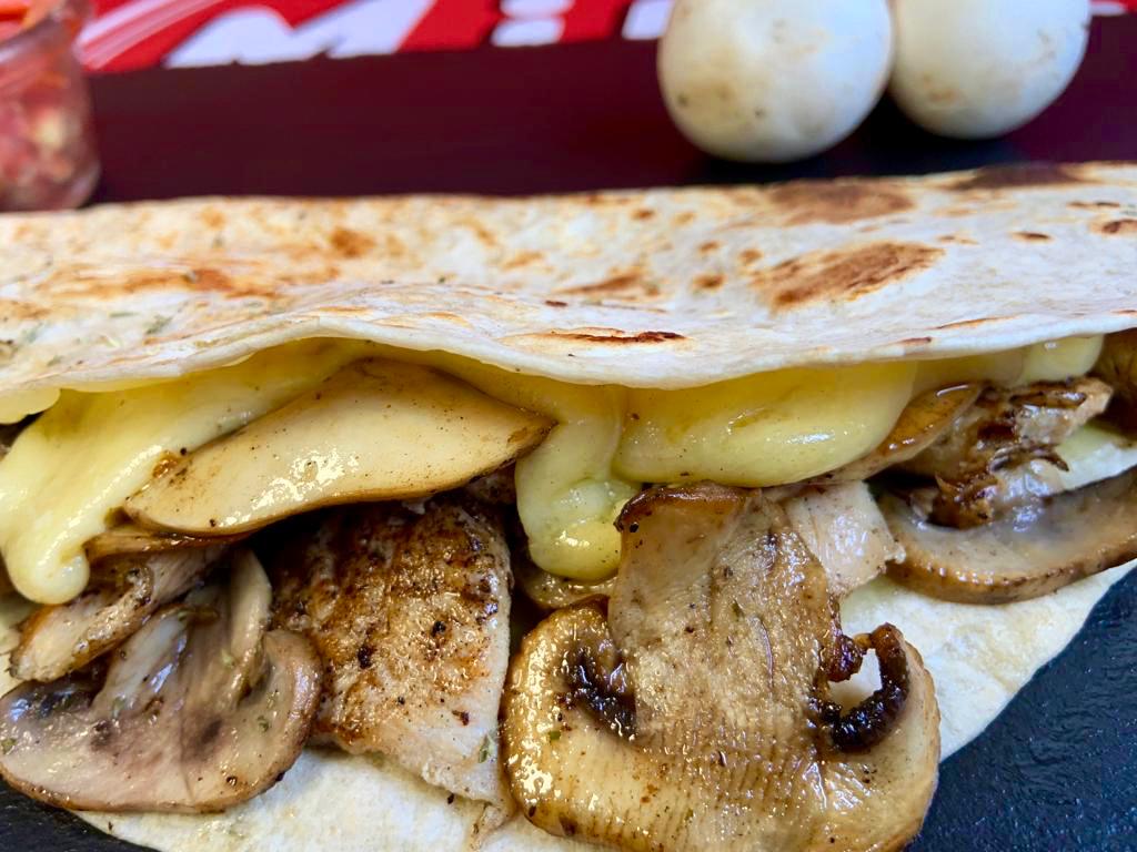Pollo o Carne y frijol. Acompañado de papas fritas pequeñas y gaseosa de 355 ml.