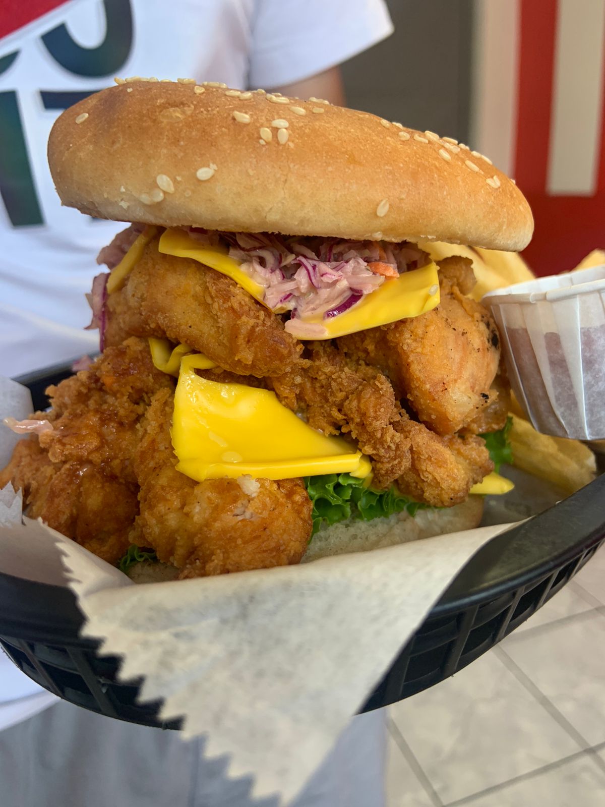 Acompañado de papas fritas pequeñas y gaseosa de 355 ml.
