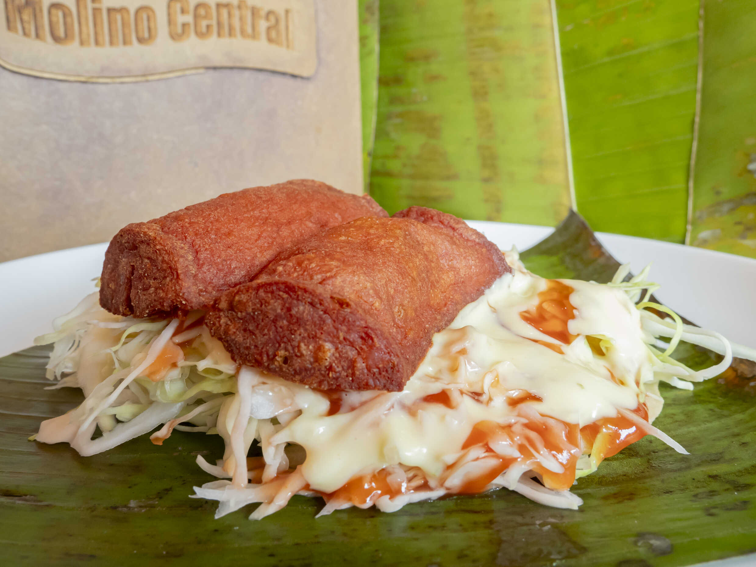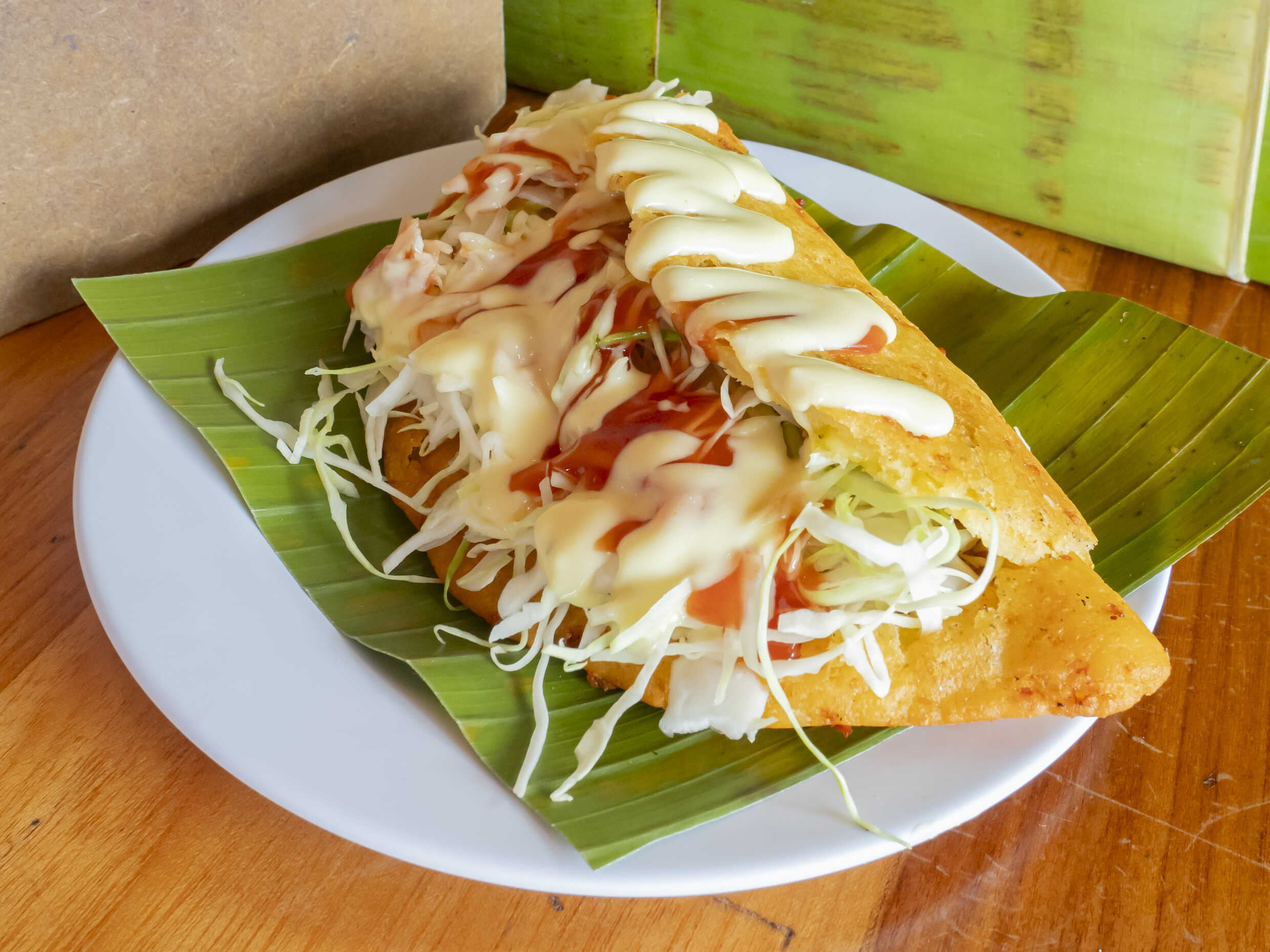 Arregla tu empanada con repollo y salsas.