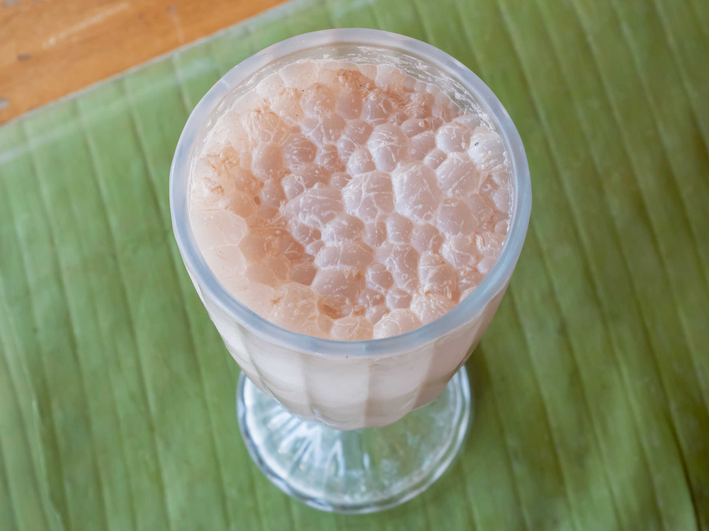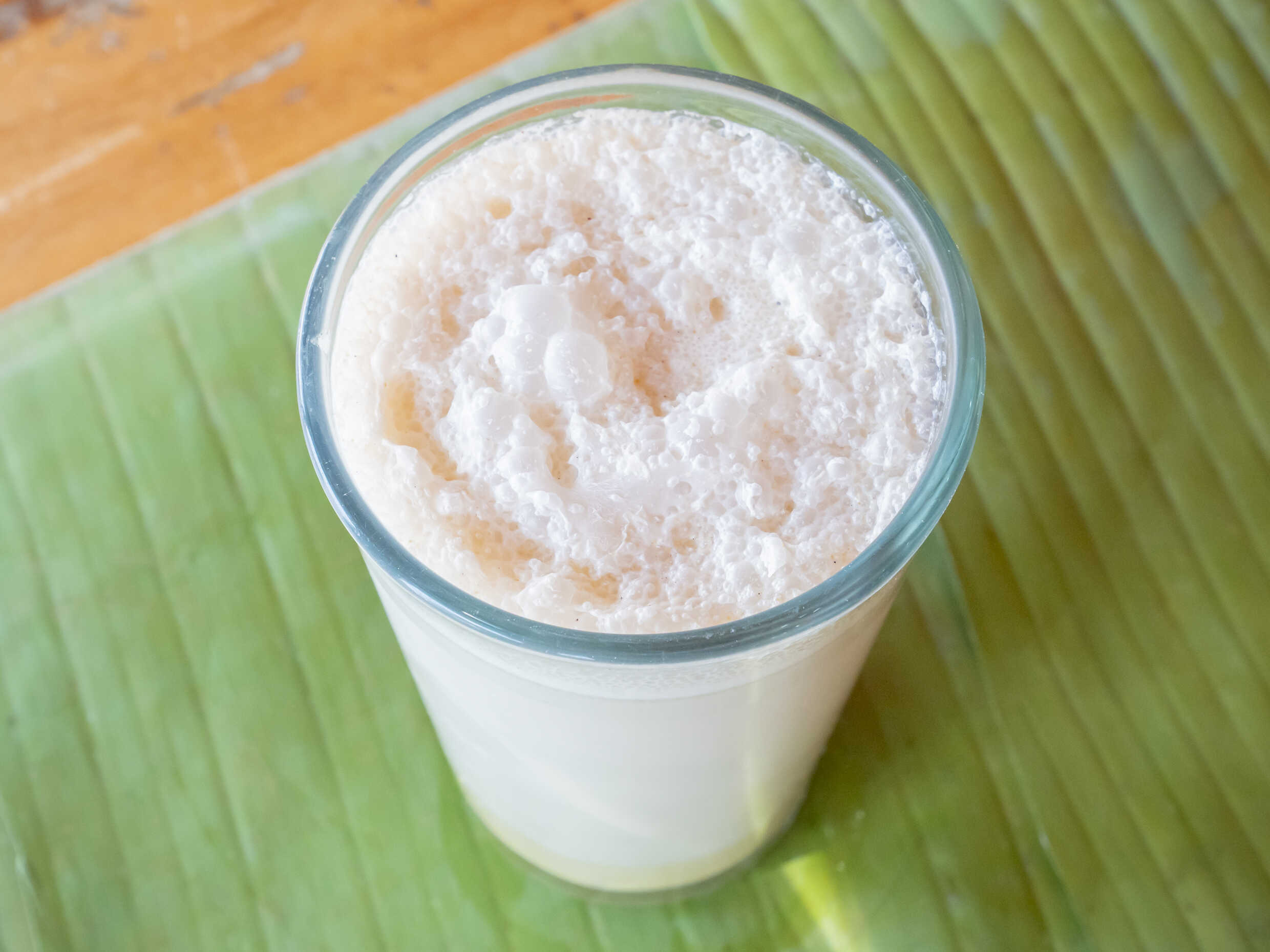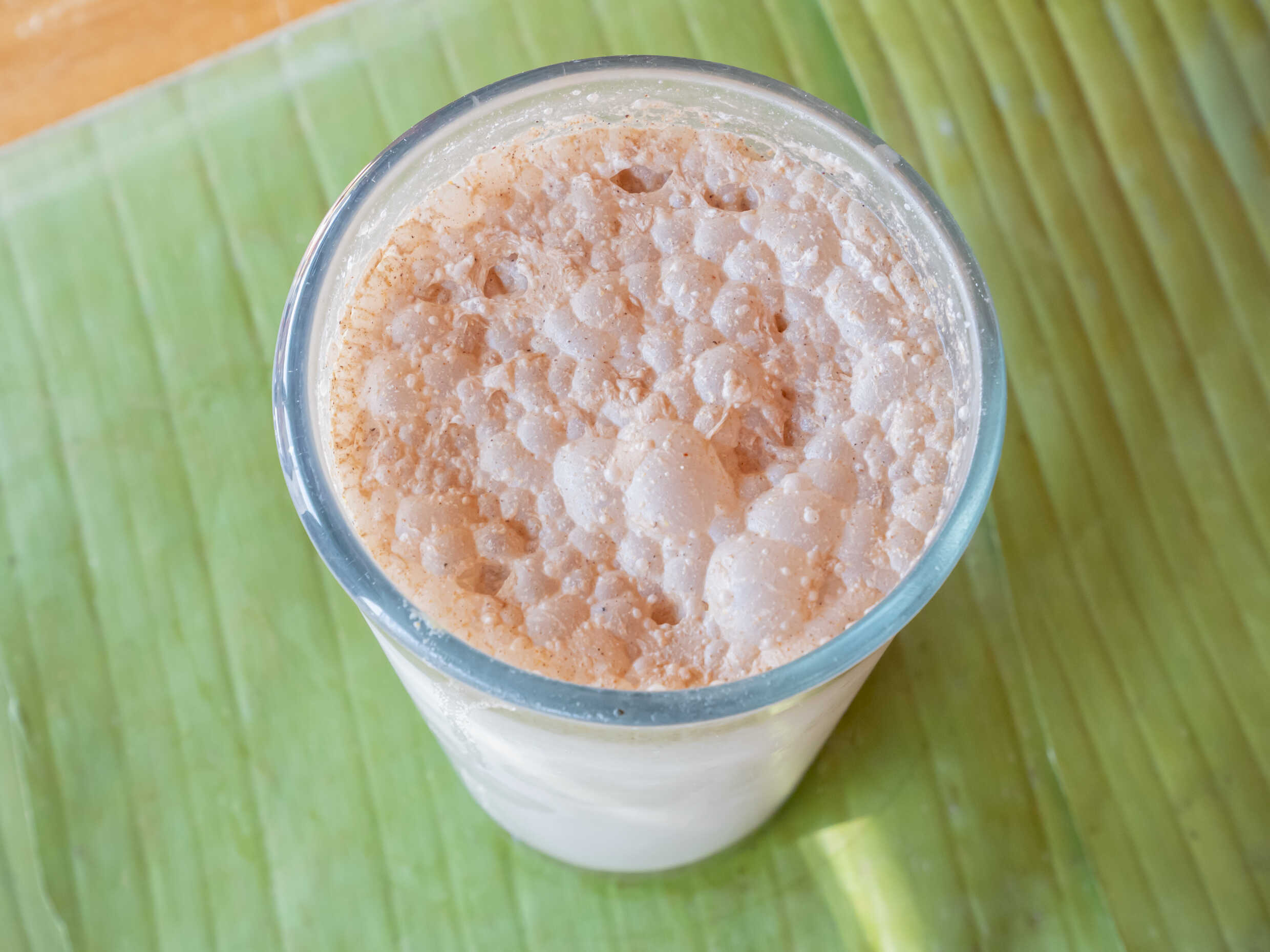 Es un atol de maíz fermentado que da un sabor agridulce a un postre muy tradicional.