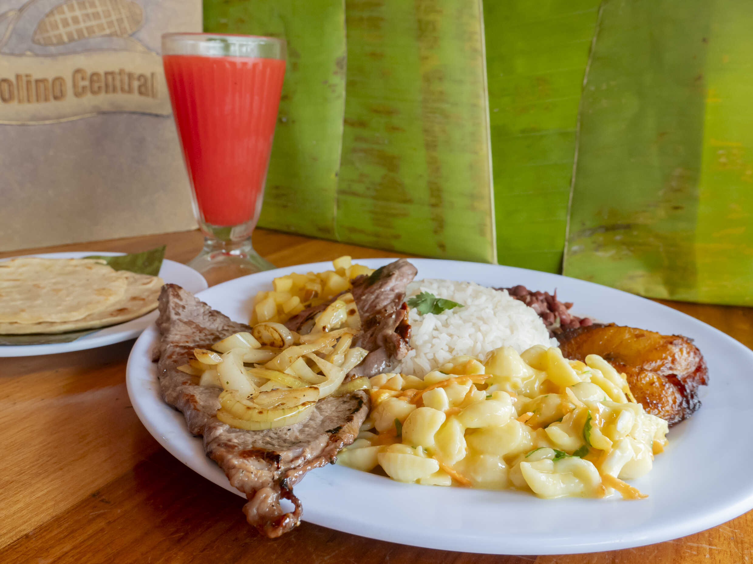 Ingredientes: Arroz, frijoles, ensalada, plátano maduro, picadillo del día y la proteína a elegir + refresco natural