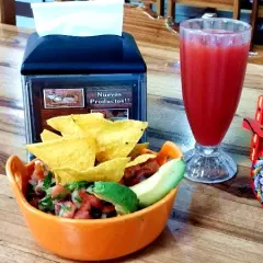 Nuestro molifrijo contiene arroz, chicharon de cerdo, Frijoles tiernos, aguacate, pico de gallo y tortillitas tostadas + refresco natural
