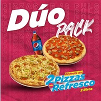 2 Pizzas de 12 pulgadas y refresco de 2 L.