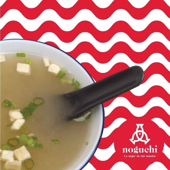 Sopa de frijol de soja, tofu, wakame y cebollín.