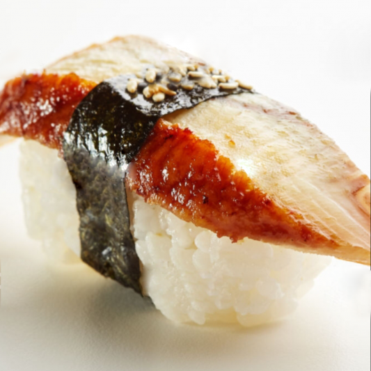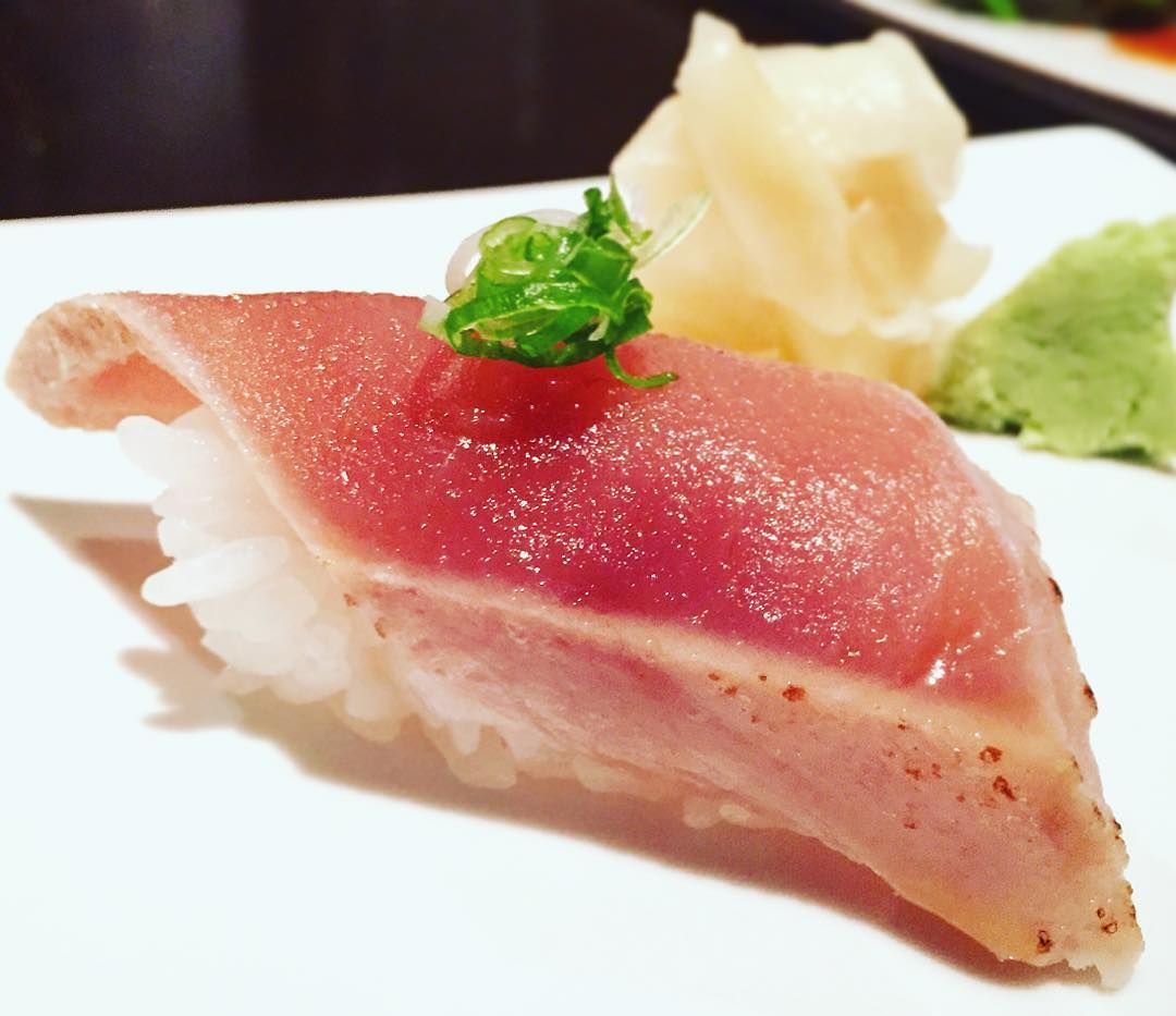 Nigiris de atún sellado, con azúcar cruda y salsa unagi.
