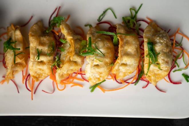 Seis piezas de gyosas, una deliciosa especialidad asiática de origen chino, adaptada a la cocina japonesa. ¡Estamos encantados de ser parte de ustedes!