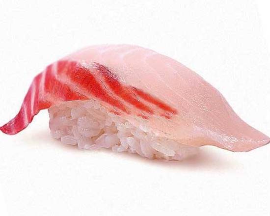 Lonja de tilapia montada sobre una bolita de arroz de sushi.