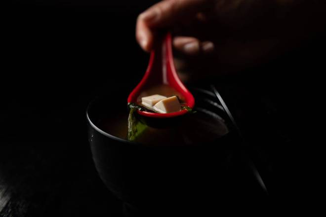 Tradicional sopa Japonesa con wakame, tofu y cebollino.