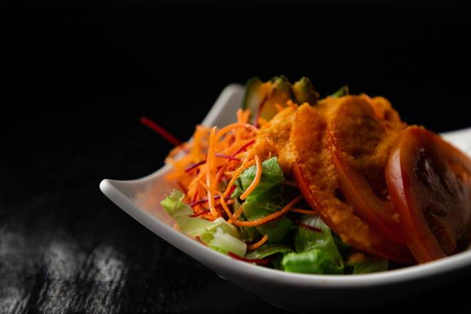 Ensalada con verduras mixtas vegetariana y aderezo de la casa.