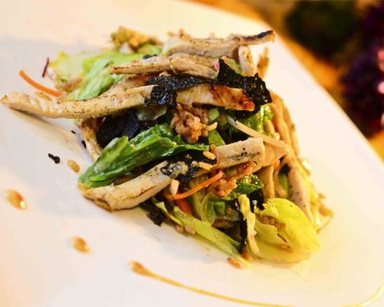Pollo a la plancha, con arroz kuro tostado, parmesano, lechugas mixtas y salsa golden.