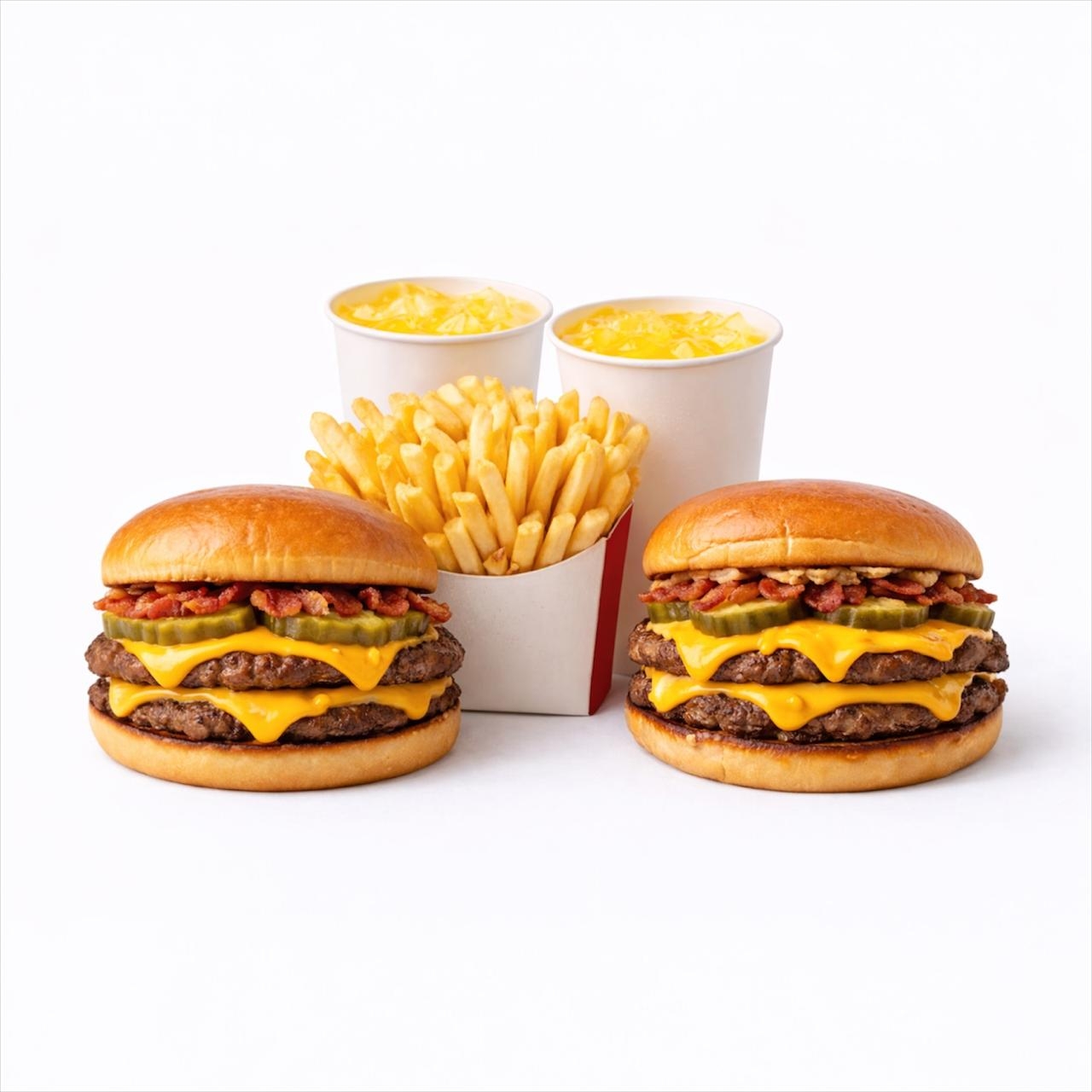 2 Chesse Burger, fríes grandes y refrescos