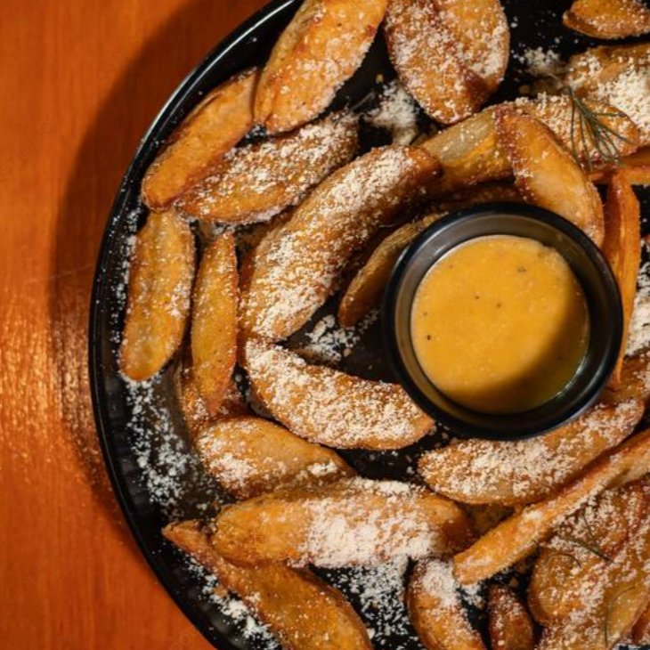 Cheddar, tocineta, cebollino y salsa de ajo parmesano.