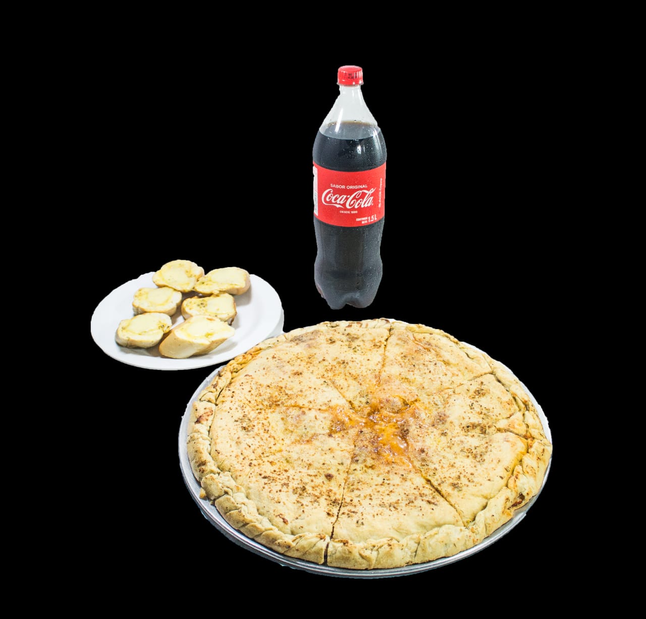 1 Pizza extra grande de cualquier sabor, 1 Coca Cola de 1.5 litros, 1 ordenes de pan supremo de 3und