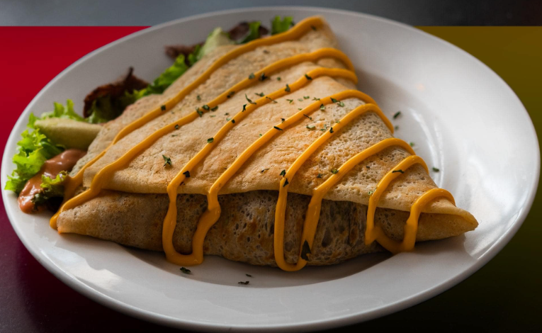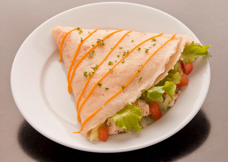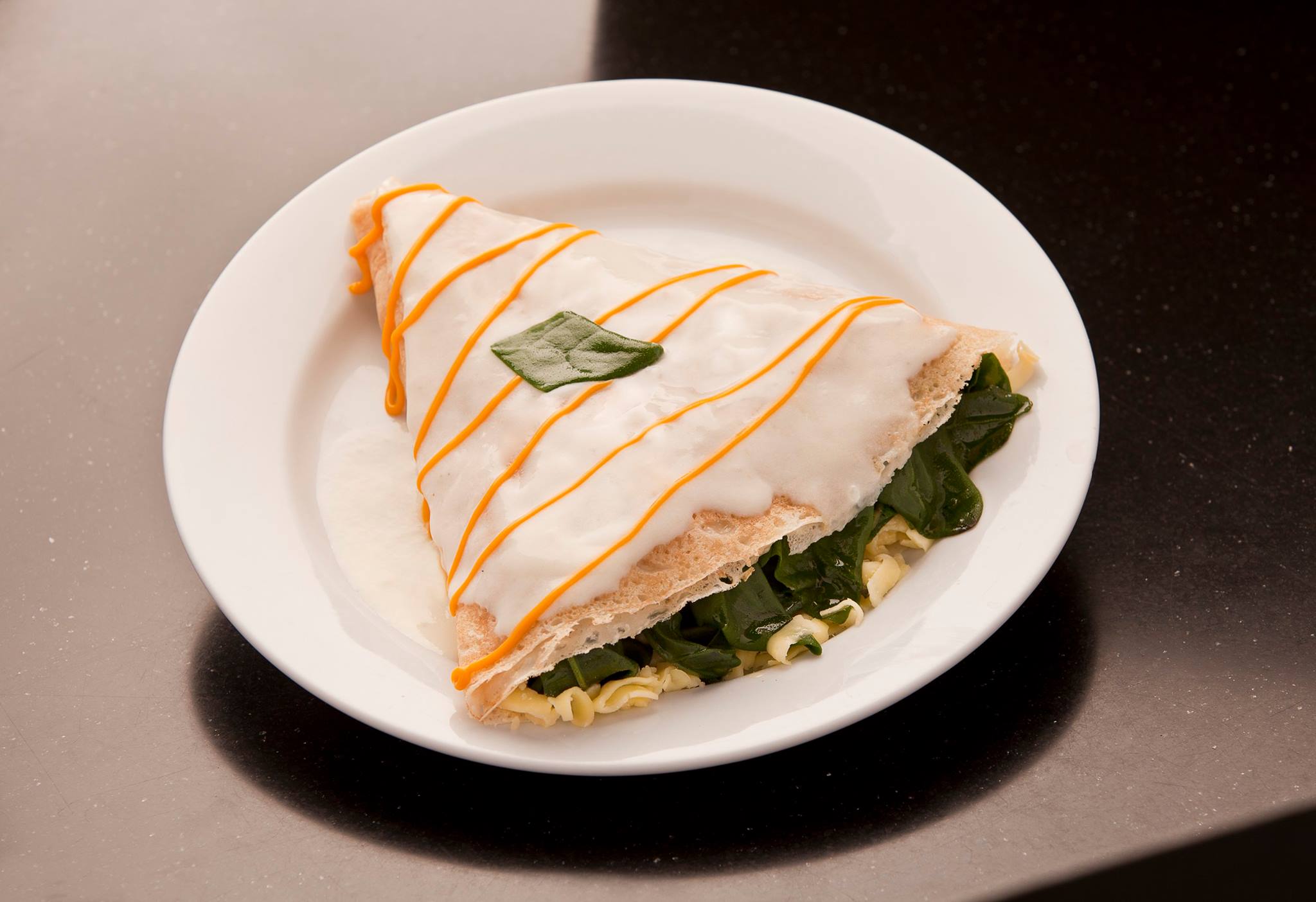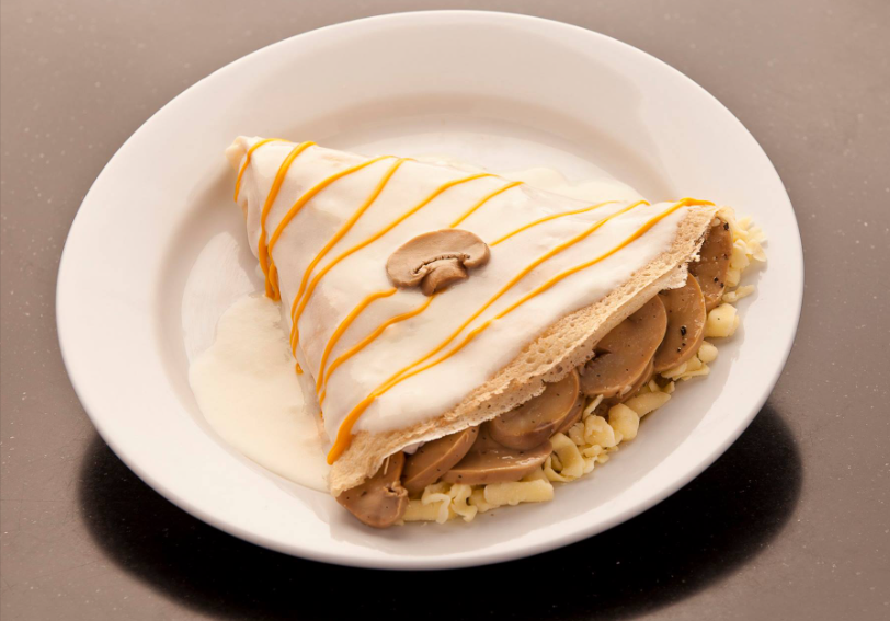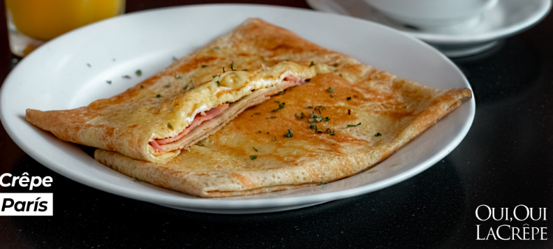 Clásica crepe de Paris con jamón, huevo y queso mozzarella. Con poco huevo