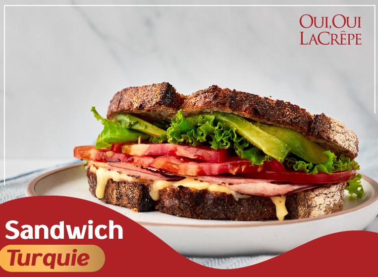 Jamón de pavo, queso, lechuga, tomate y aguacate