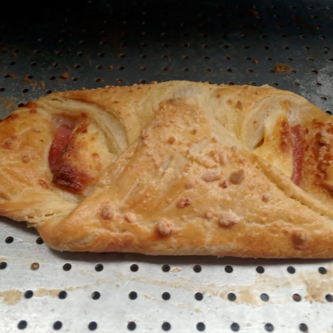 Lazos de hojaldre con jamón y queso.