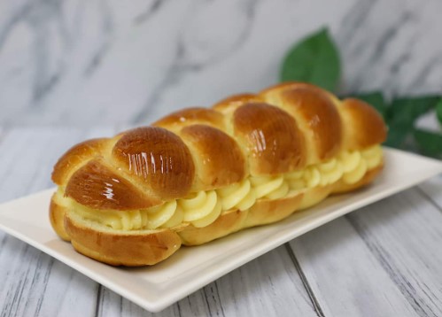 Pan en forma de trenza suave con relleno de crema pastelera.