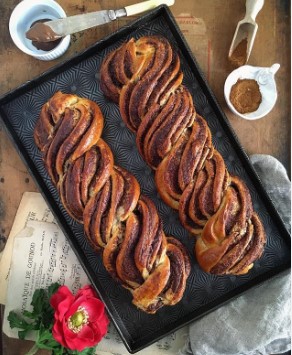 Pan en forma de trenza suave con relleno de dulce de leche.