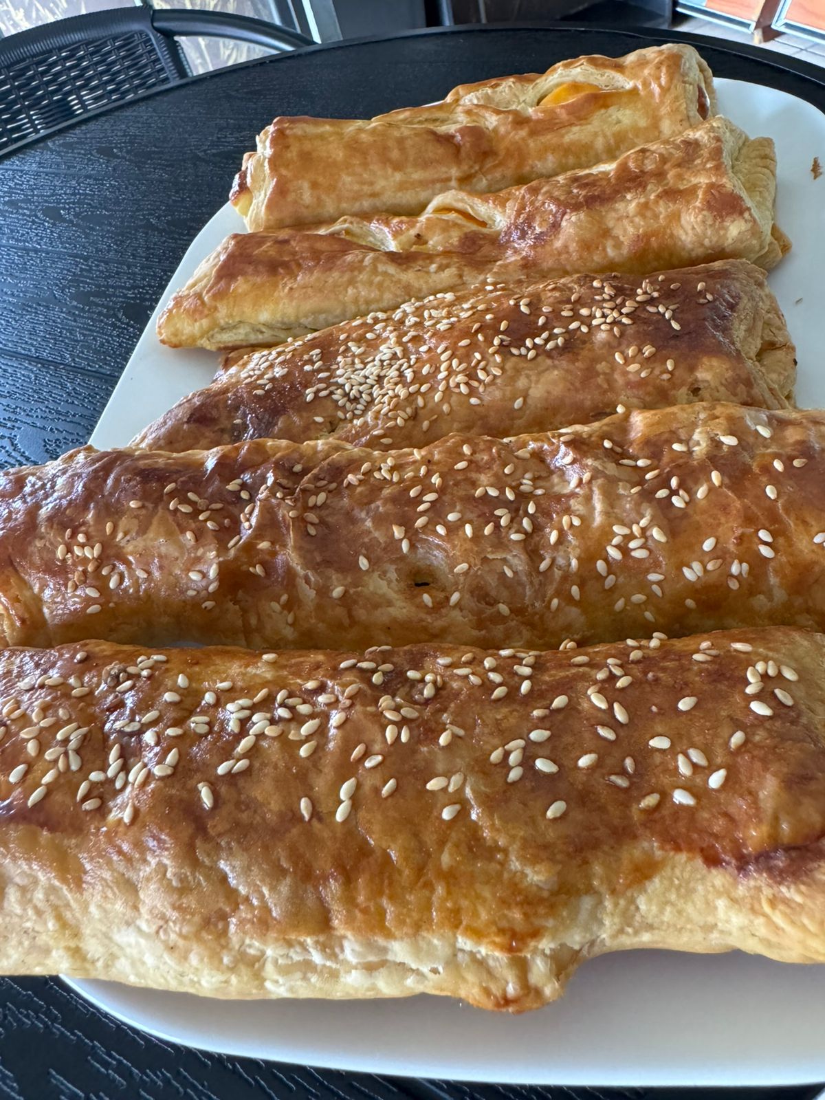 Arrollado con jamón y queso de masa de hojaldre.