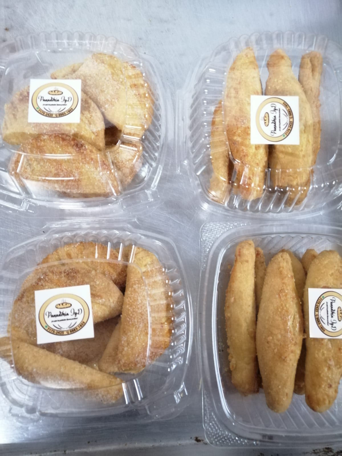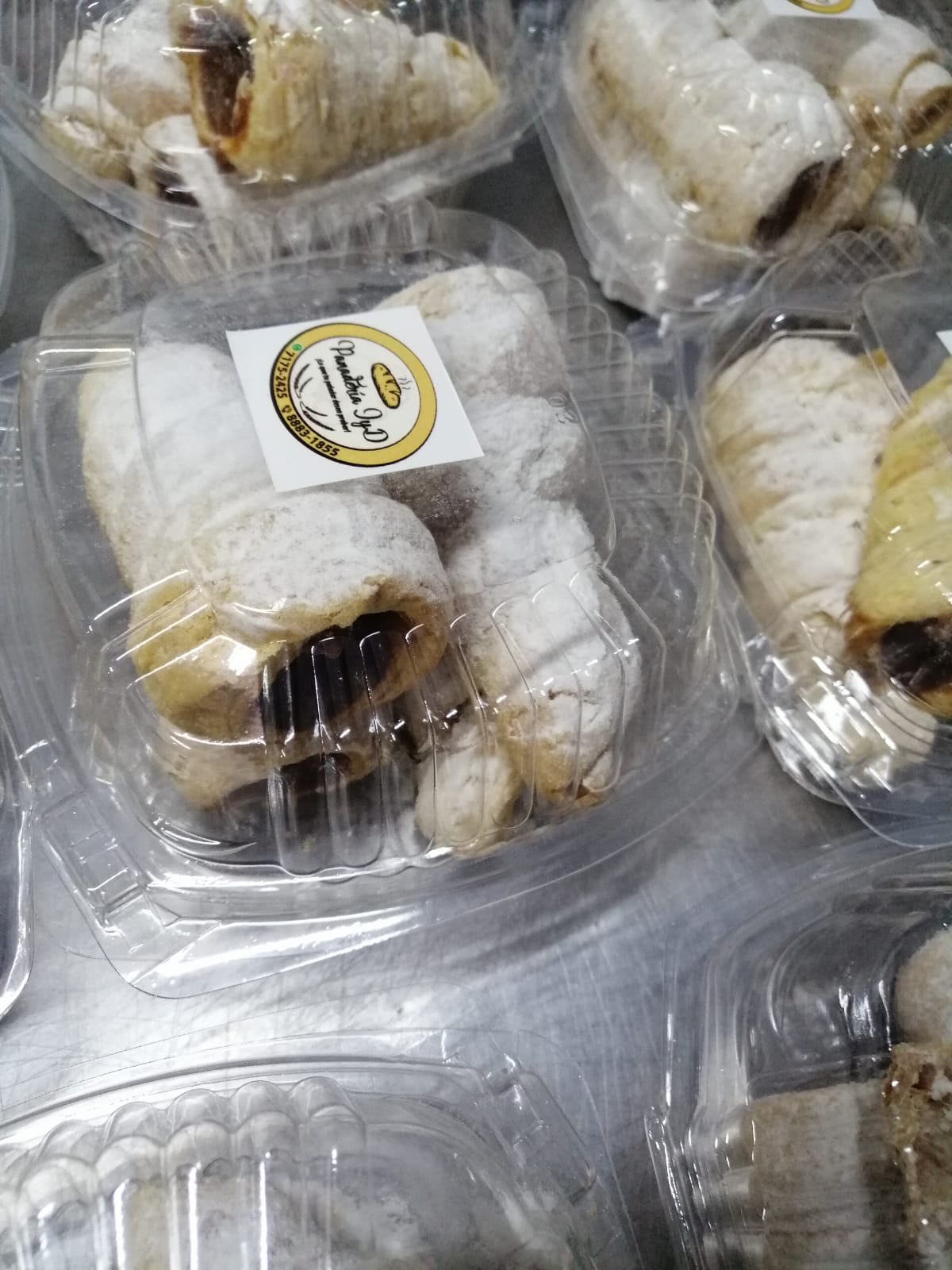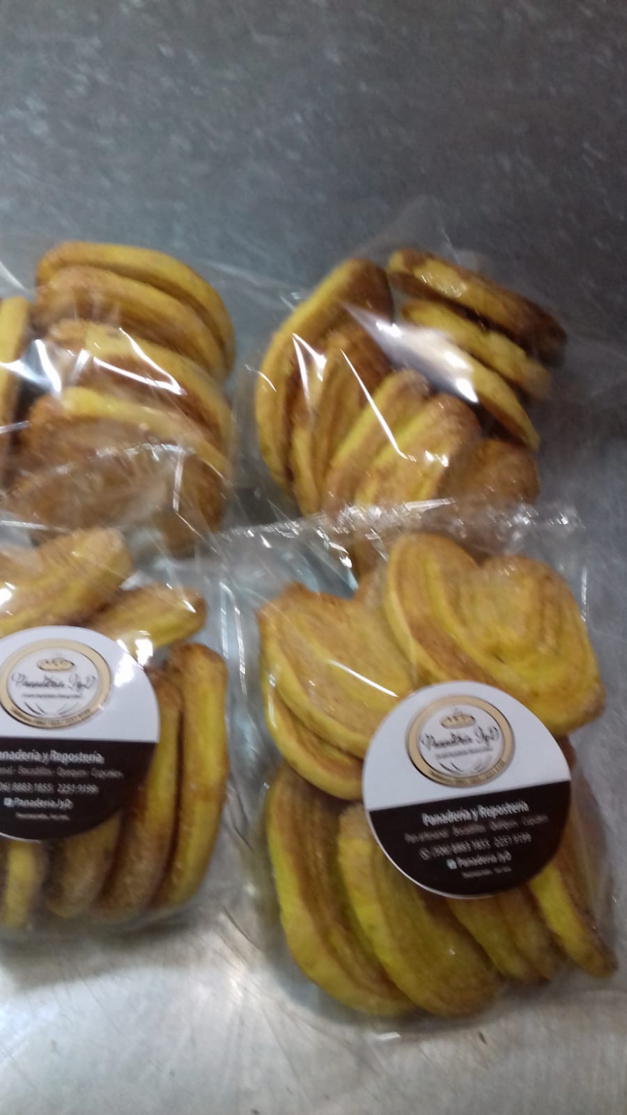Pasta hojaldre rellenos y cubiertos de azúcar refinada.
