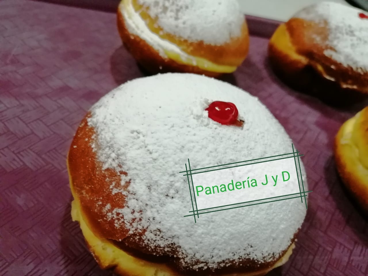 Masa dulce rellena de crema pastelera, cubierta de azúcar refinada.