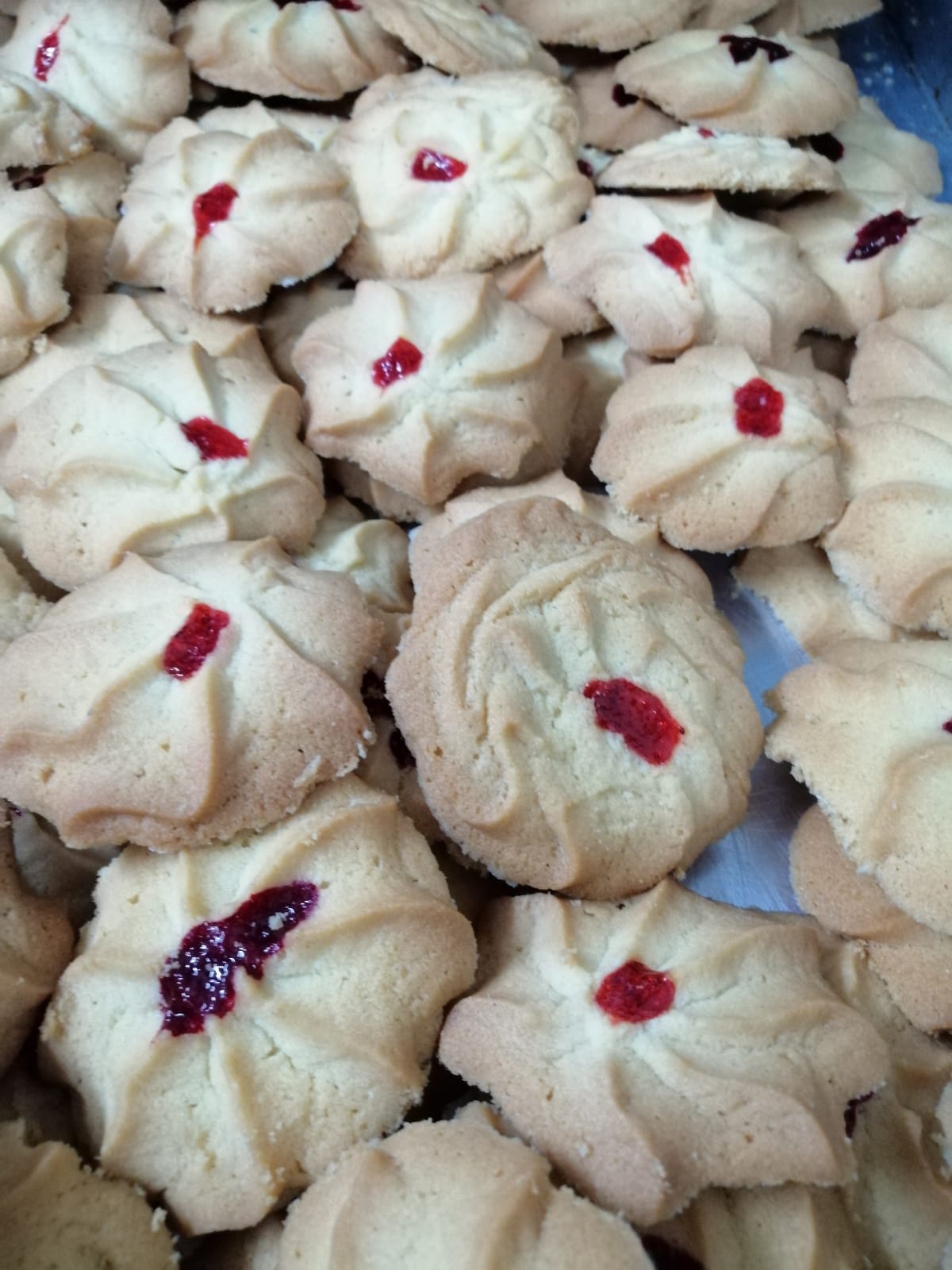 Masa de galletas a base de mantequilla con puntos de jalea de guayaba.