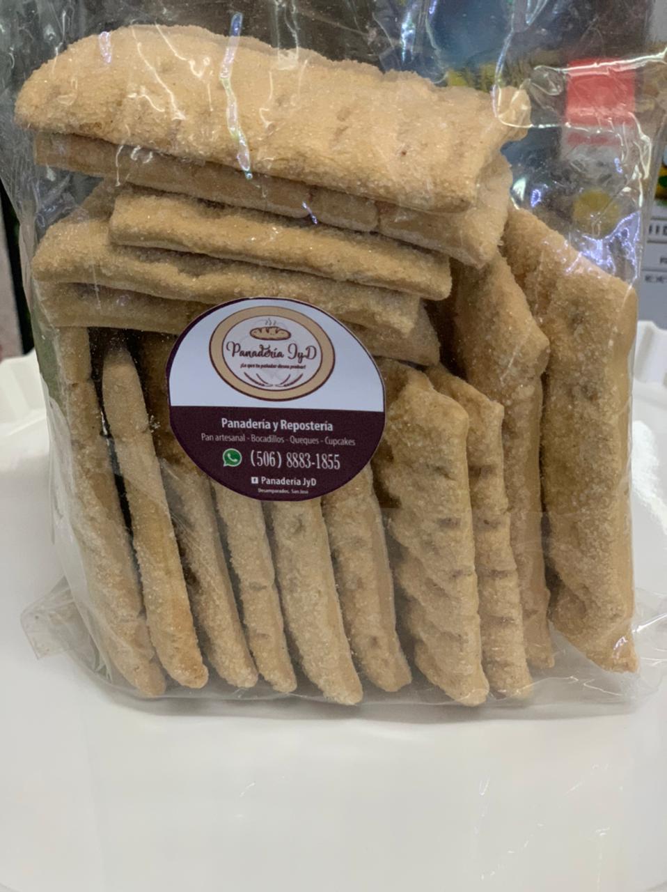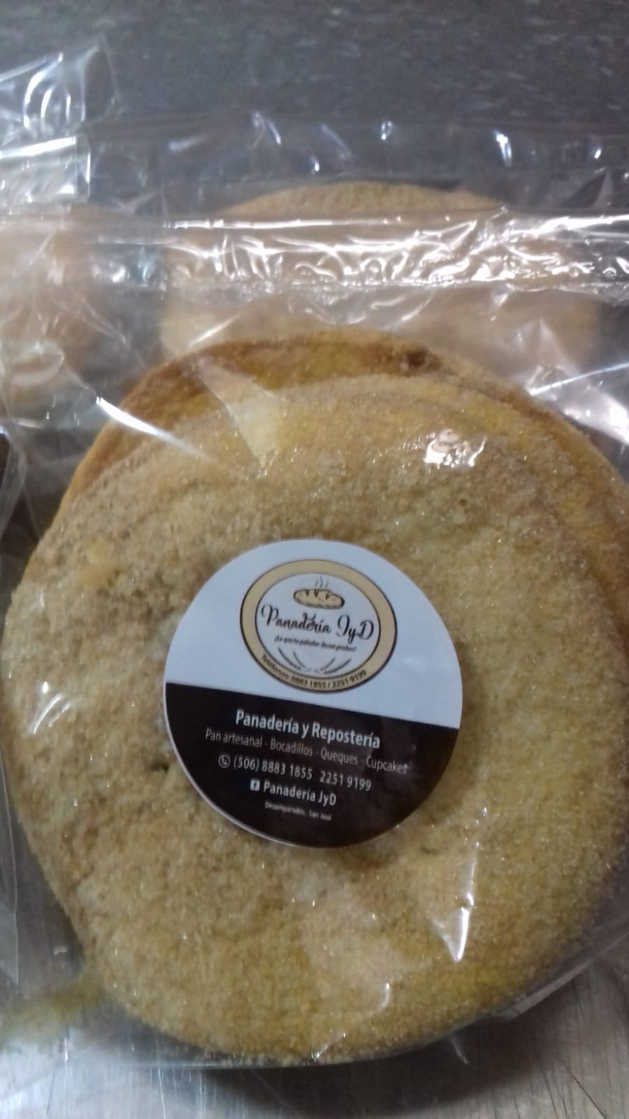 Galleta rellena de dulce de leche y cubierta con azúcar refinada.