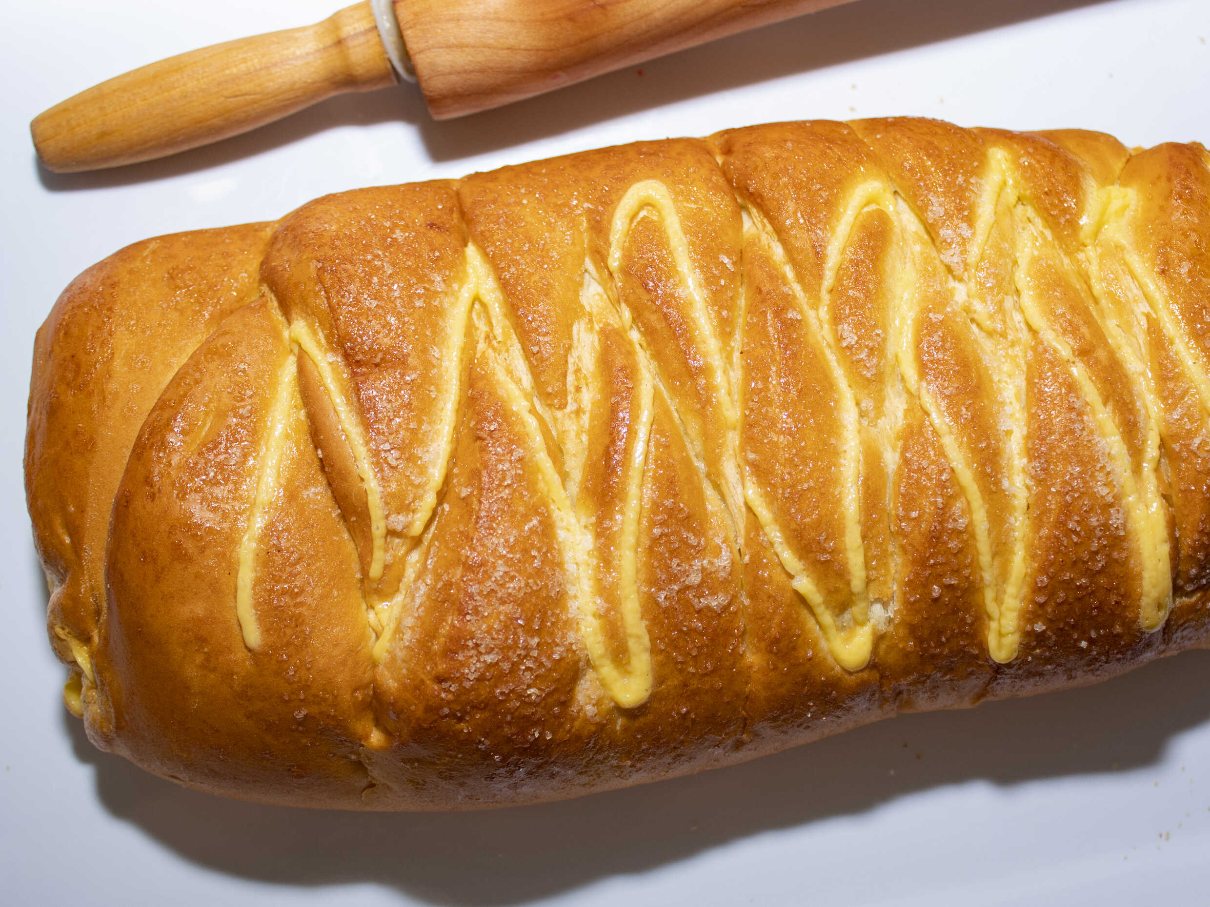 Trenza dulce con relleno de quesocrema y jalea de piña